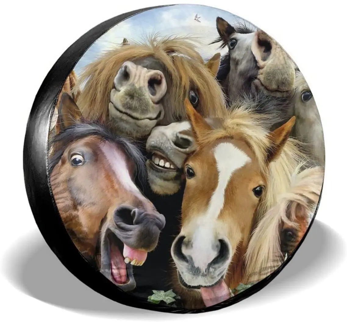 Чехол запасной для селфи Kanen с лошадьми, универсальный солнцезащитный водонепроницаемый пыленепроницаемый чехол для колес, подходит для прицепа, фургона, внедорожника, кемпера