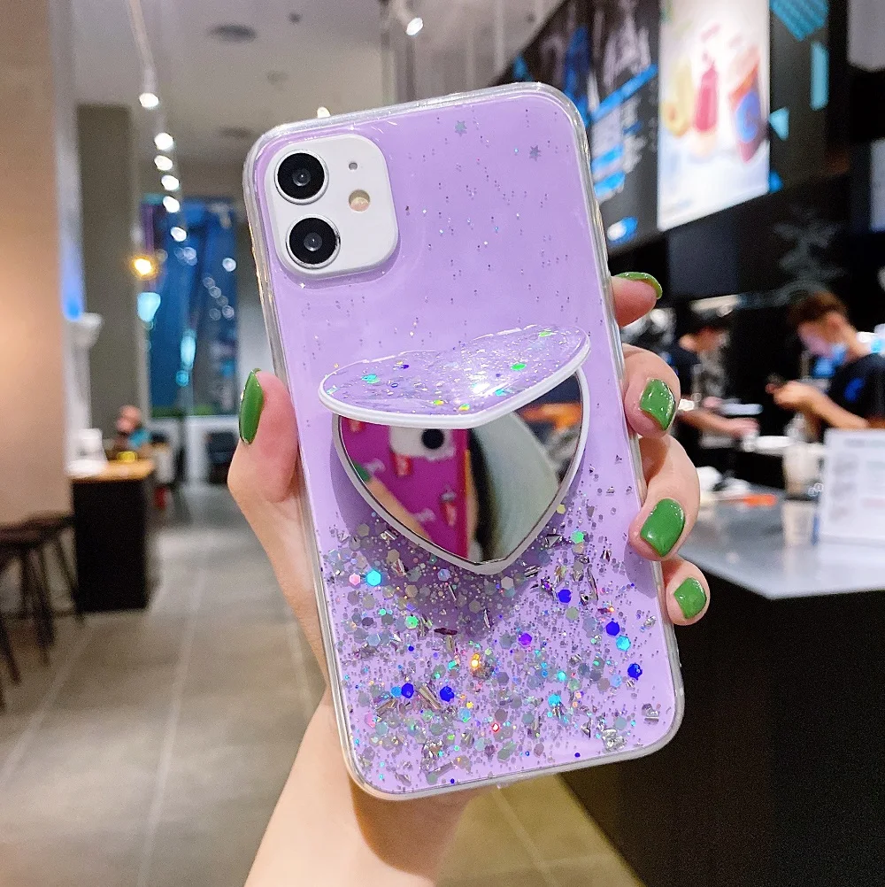 Блестящий силиконовый чехол для Samsung M52, M31S, M31, M30S, M21, чехол с держателем в виде сердца, зеркальные блестки, прозрачный чехол, чехол