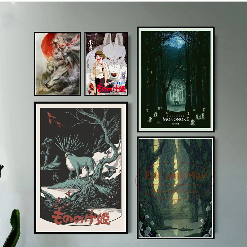 Постеры и принты из фильмов принцессы Мононоке для студийной фотосъемки, Картина на холсте, Настенная картина, ВИНТАЖНЫЙ ПЛАКАТ, декоративный домашний декор