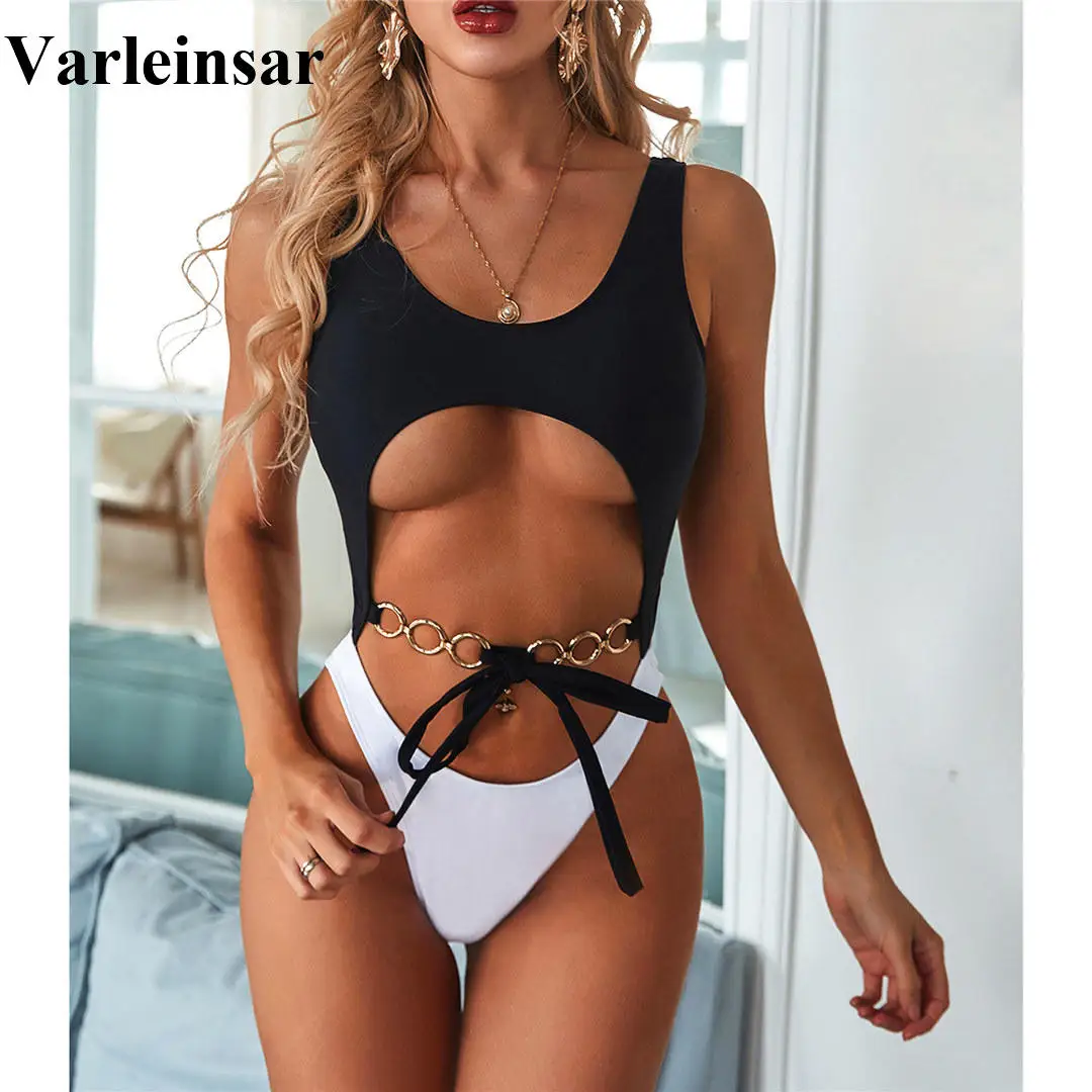 Новинка, сексуальный цельный купальник с v-образным вырезом и высок...