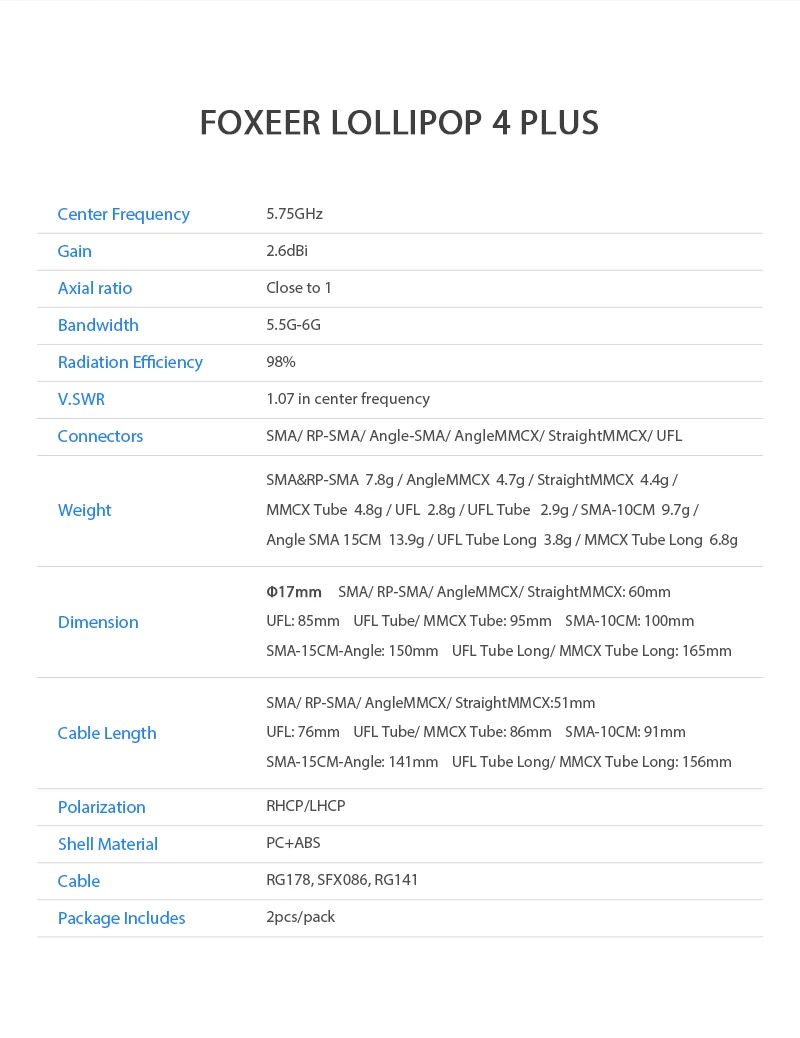 2 шт. Foxeer Lollipop 4 Plus Omni 5,75G дБи Мини-Антенна RHCP LHCP ...