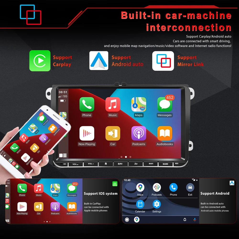 Hikity 8G 128G DSP 8 Core 9 "Сплит-экран GPS 4G 2 Din мультимедийный плеер для Volkswagen VW Golf 5 6 Passat B6 Touran Polo Sedan Tiguan Jetta