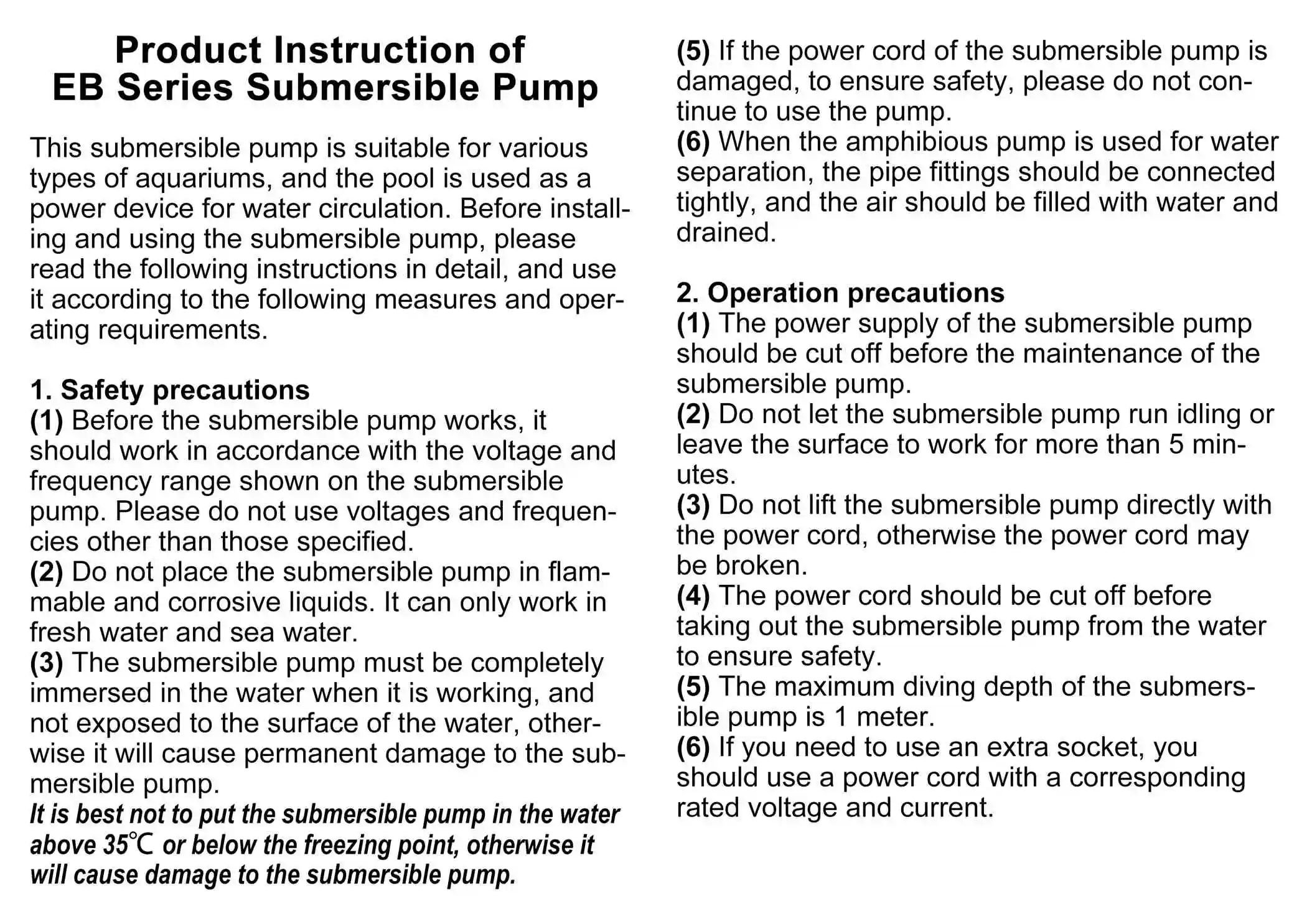 Примечание:(1) Выберите тип штепсельной вилки из списка вариантов (которые также указаны на фото), чтобы убедиться, что штепсельная вилка нашего продукта может адаптироваться к вашей розетке!(2) Рабочее напряжение продукта указано ниже. Пожалуйста, используйте необходимое оборудование для обеспечения рабочего напряжения продукта, если ваша среда не может достичь!(3) перед запуском насоса необходимо заполнить водой! ВариантыВключает в себяРазмерыПодробная информацияEB301В том числе: насос + 2 * Насадка (8,4 мм/0,32 ", 13 мм/0,5").Длина * Ширина * Высота: 5,8*3,8*4,6 см (2,28*1,49*1,81 ") (вы можете найти в снятии мерок деталями, которые должны быть обозначены на фото).Характеристики насоса: 220V 3W, maкс (58GPH/220LPH, 0,5 m/1.6ft)EB302В том числе: насос + 2 * Насадка (8,4 мм/0,32 ", 13 мм/0,5").Длина * Ширина * высота: 6,5*4,3*5,3 см (2,56*1,69*2,08 ") (вы можете найти в снятии мерок деталями, которые должны быть обозначены на фото).Детали насоса: 220 В 6 Вт, Макс (118GPH/450LPH, 0,8 м/2.6ft)EB303В том числе: насос + 2 * Насадка (8,4 мм/0,32 ", 13 мм/0,5").Длина * Ширина * Высота: 7*4,5*5,7 см (2,75*1,77*2,24 ") (вы можете найти в снятии мерок деталями, которые должны быть обозначены на фото).Детали насоса: 220 В 10 Вт, макс. (158GPH/600LPH, 1,2 м/3.9ft)EB304В том числе: насос + 2 * Насадка (8,4 мм/0,32 ", 13 мм/0,5").Длина * Ширина * Высота: 8*5,5*6,8 см (3,15*2,16*2,68 ") (вы можете найти в снятии мерок деталями, которые должны быть обозначены на фото).Детали насоса: 220 В 15 Вт, макс. (211GPH/800LPH, 1,6 м/5.2ft)EB305В том числе: насос + 2 * сопла (16 мм/0,62 ", 19 мм/0,75").Длина * Ширина * Высота: 10*6,5*7,5 см (3,94*2,56*2,95 ") (вы можете найти в снятии мерок деталями, которые должны быть обозначены на фото).Детали насоса: 220 В 25 Вт, макс. (317GPH/1200LPH, 2,0 м/6.5ft)EB306В том числе: насос + 2 * сопла (19 мм/0,75 ", 22 мм/0,86").Длина * Ширина * Высота: 11*7,5*9,5 см (4,33*2,95*3,74 ") (вы можете найти в снятии мерок деталями, которые должны быть обозначены на фото).Детали насоса: 220 В 35 Вт, макс. (528GPH/2000LPH, 2,2 м/7.2ft)EB307В том числе: насос + 3 * сопла (19 мм/0,75 ", 22 мм/0,86", с фокусным расстоянием 25 мм/1 ").Длина * Ширина * высота: 12*7,5*10 см (4,72*2,95*3,94 ") (вы можете найти в снятии мерок деталями, которые должны быть обозначены на фото).Детали насоса: 220 В 50 Вт, Макс (660GPH/2500LPH, 2,5 м/8.2ft)EB308В том числе: насос + 3 * сопла (19 мм/0,75 ", 22 мм/0,86", с фокусным расстоянием 25 мм/1 ").Длина * Ширина * высота: 12*7,5*10 см (4,72*2,95*3,94 ") (вы можете найти в снятии мерок деталями, которые должны быть обозначены на фото).Детали насоса: 220 В 60 Вт, Макс (792GPH/3000LPH, 3,0 м/9.8ft)