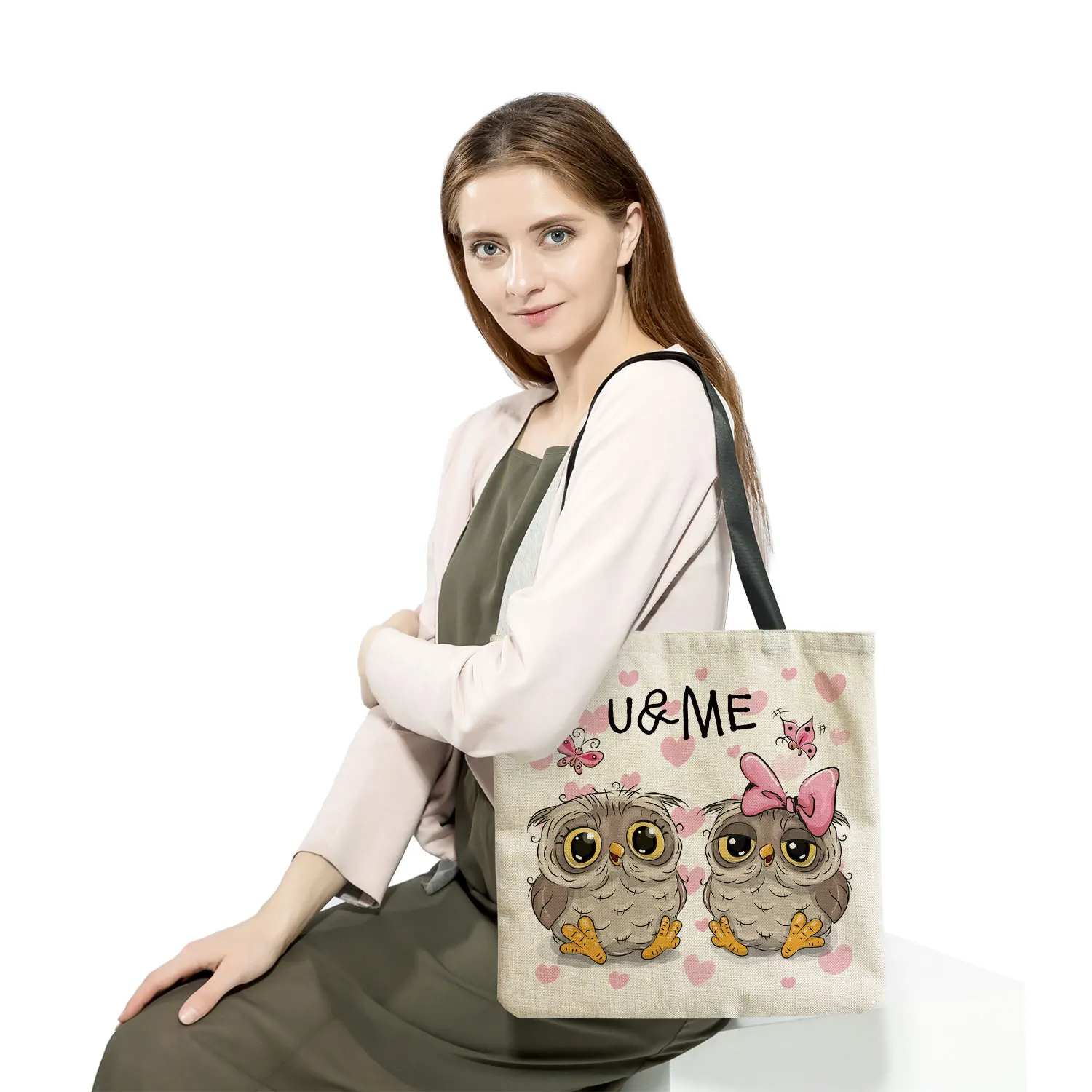 Женская сумка-тоут с принтом в виде совы, повседневная вместительная многоразовая Сумочка на плечо в стиле Харадзюку, модный тренд для покупок