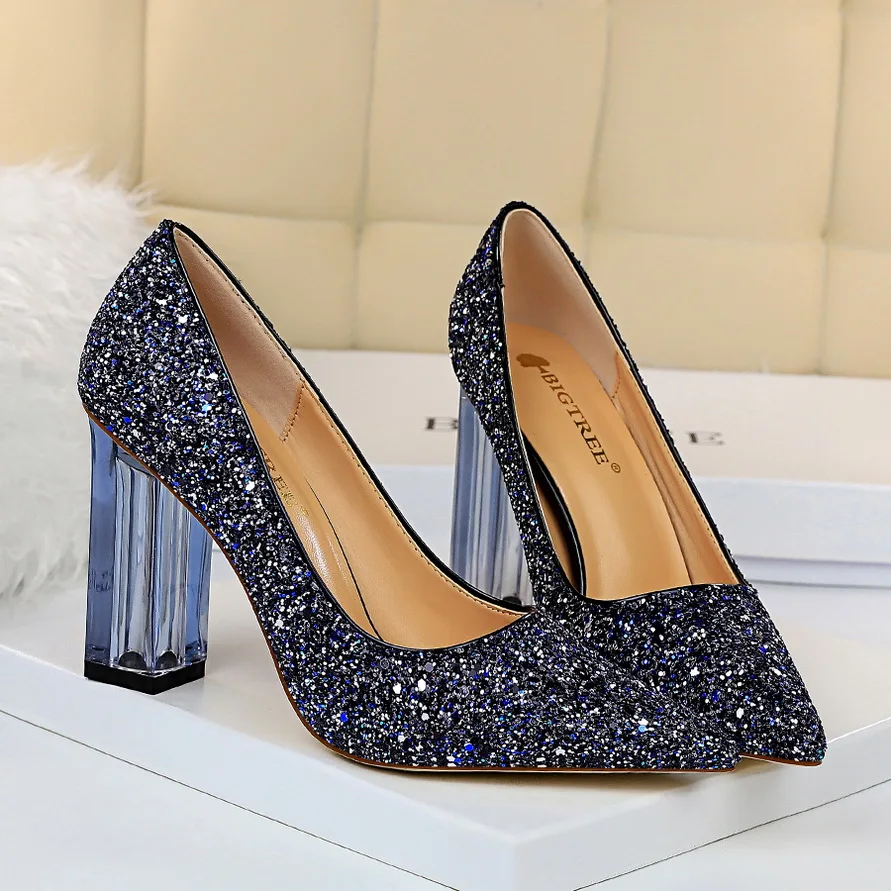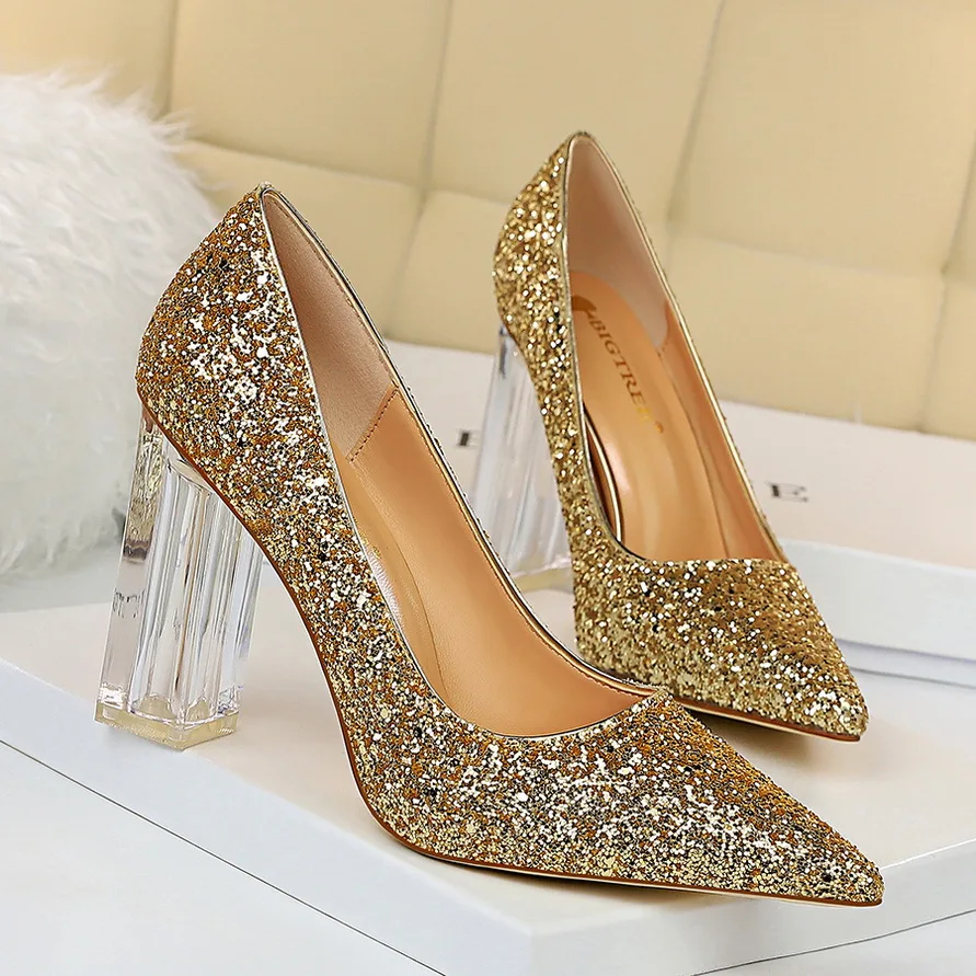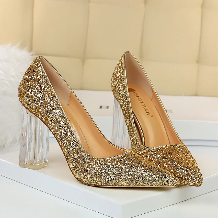 Женские туфли на высоком каблуке 2022 см, золотистые туфли-лодочки с блестками, туфли невесты больших размеров 43, 9,5