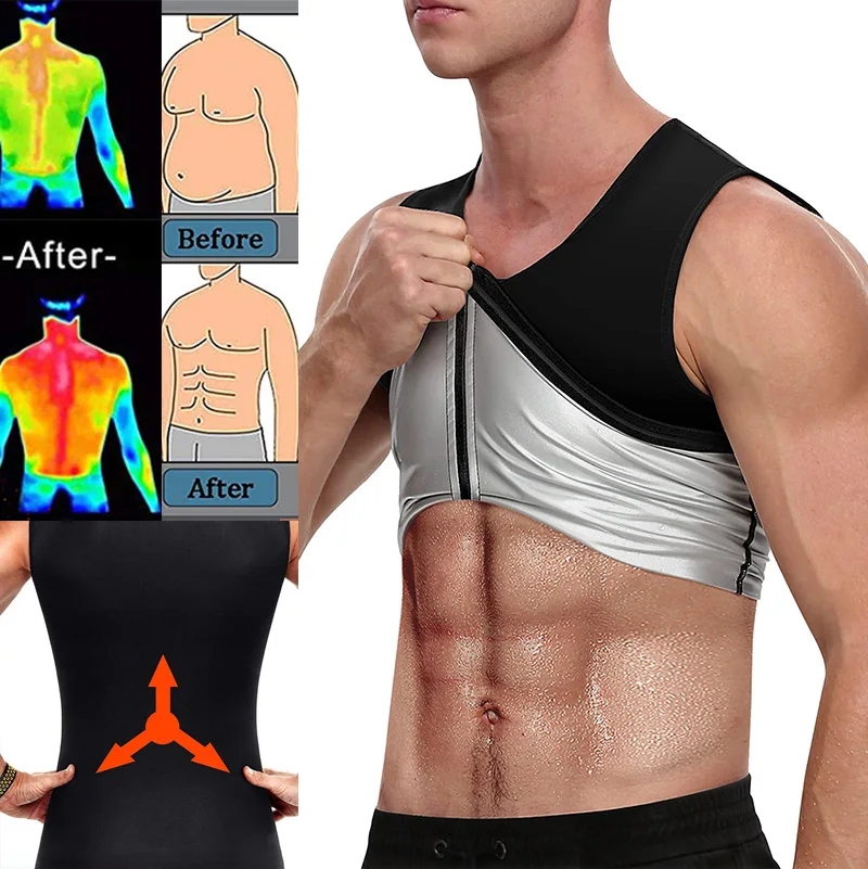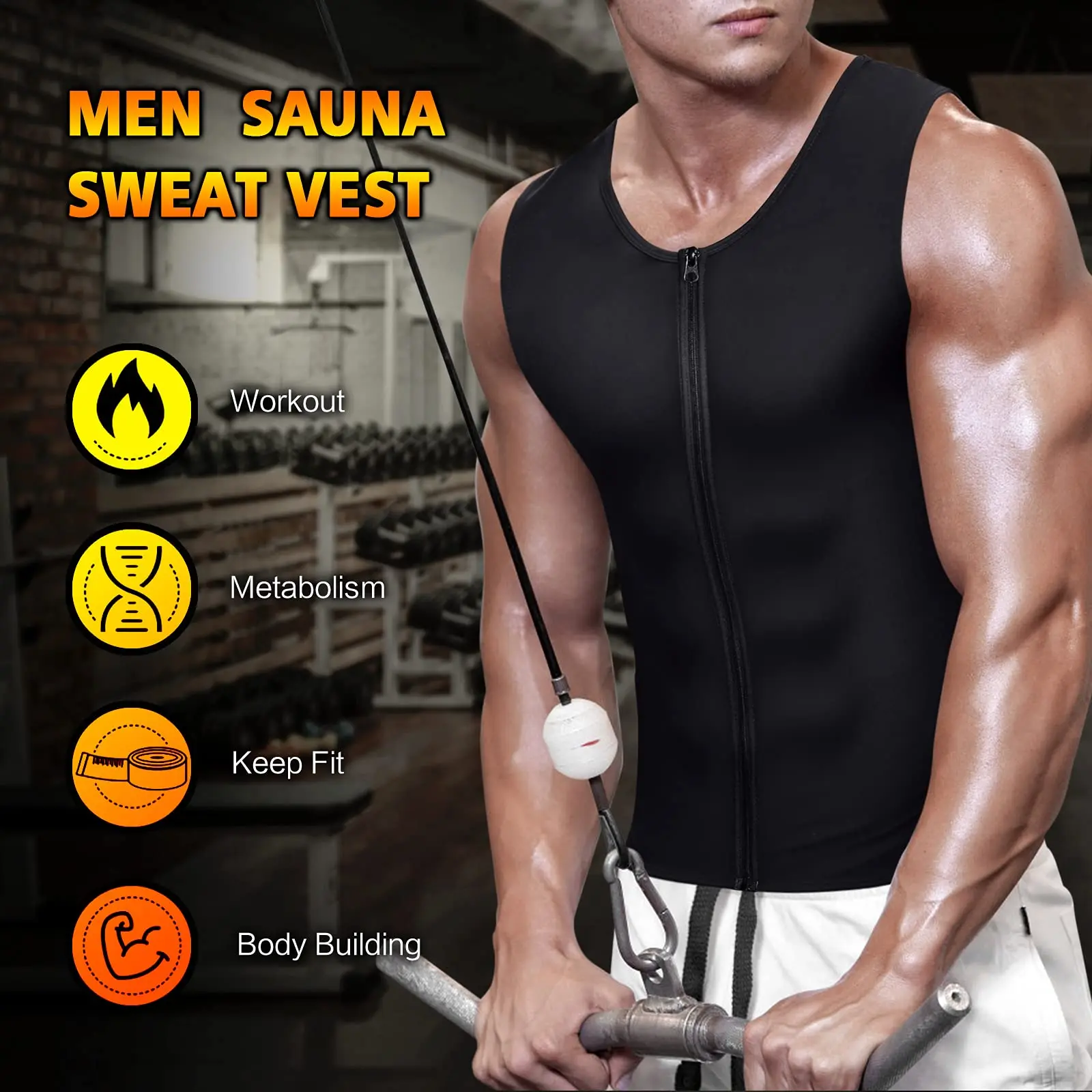 Мужской костюм-сауна для похудения, тренировочный топ, жилет для похудения с молнией, жакет для сауны