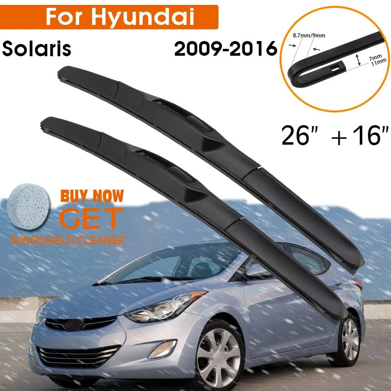 Автомобильная щетка стеклоочистителя для Hyundai Solaris 2009-2016 ветровое стекло резиновый кремний сменный Стеклоочиститель 26 "+ 16" LHD RHD аксессуары