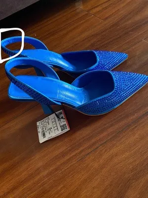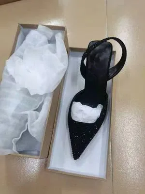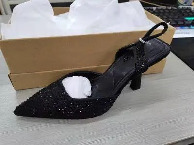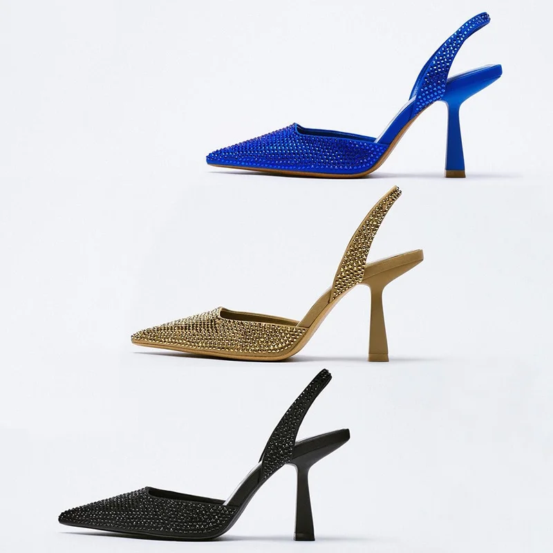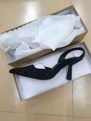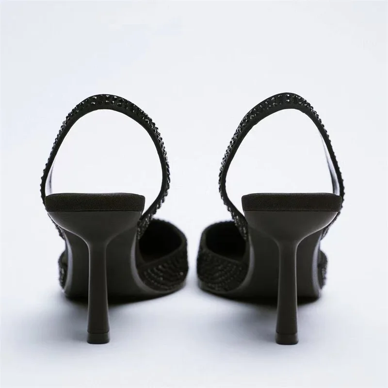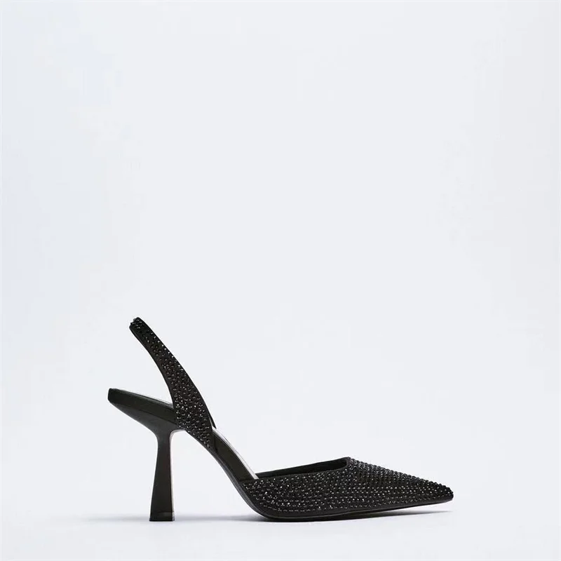 Женские босоножки WSL TRAF ZA, заостренный носок, туфли на каблуке, сандалии с ремешком на пятке, со стразами, черные, на весну