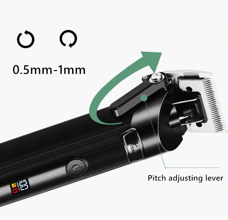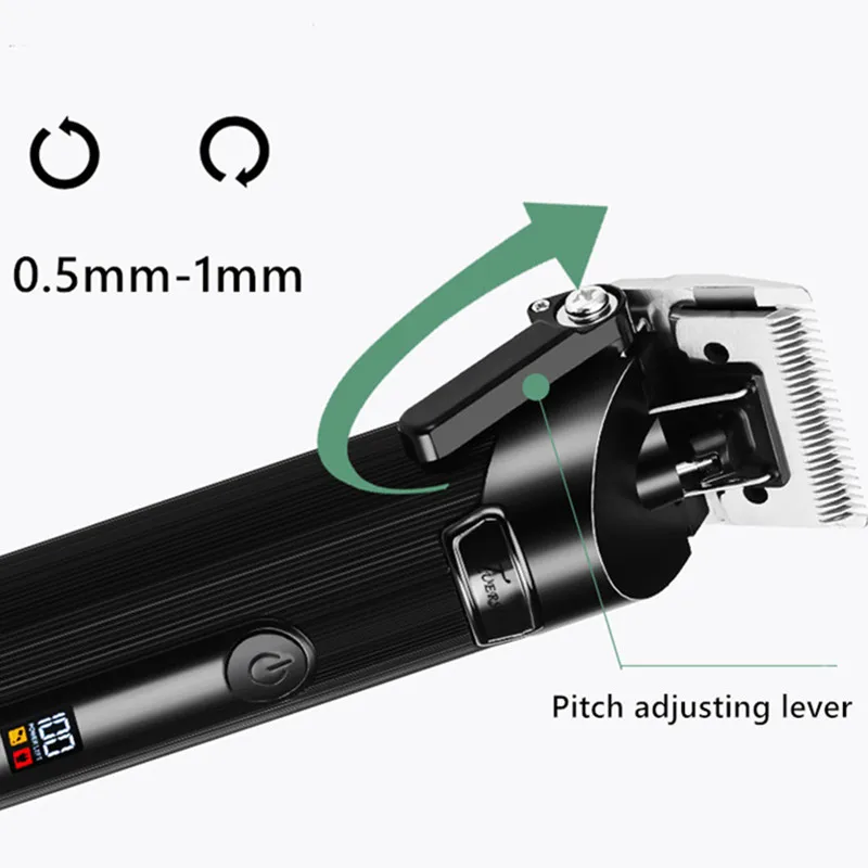 Моющаяся режущая головка, низкий уровень шума, может использоваться при зарядке, сильной мощности, 200 минут работы от батареи, быстрой зарядке, рычаге регулировки шага, острой режущей головке, переключателе питания, светодиодном дисплее экрана, нижняя зарядка, металлический корпус