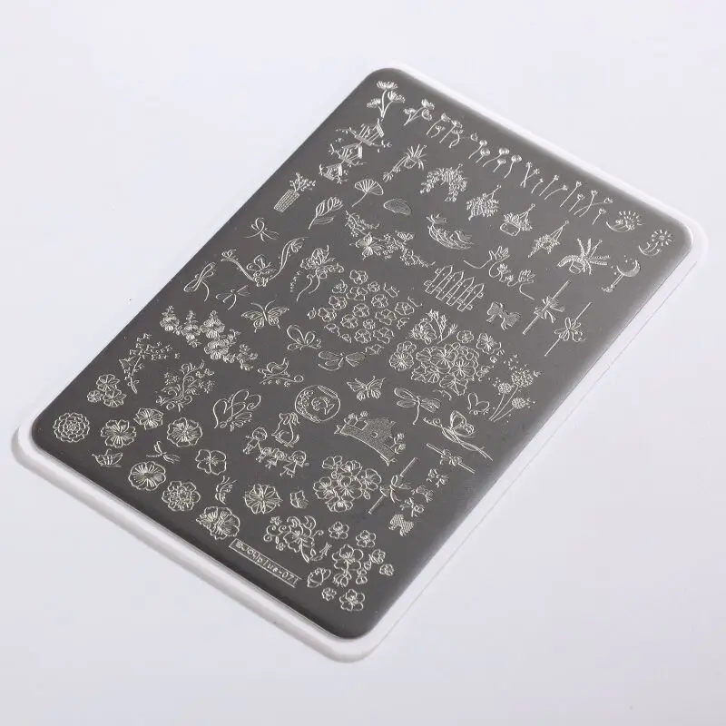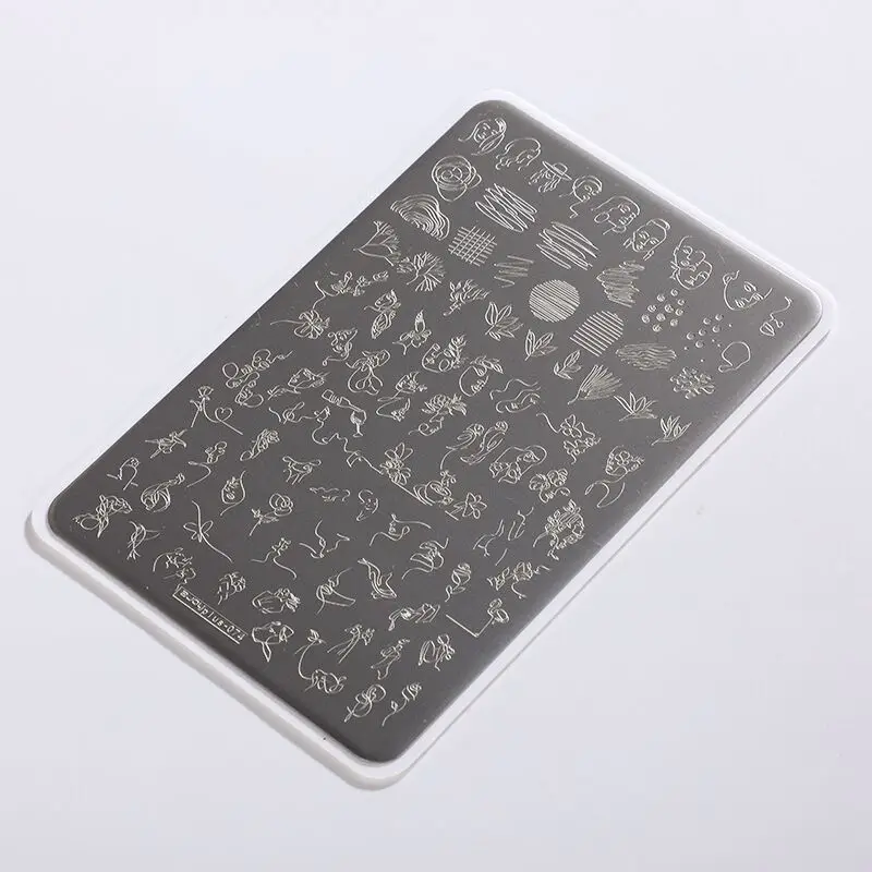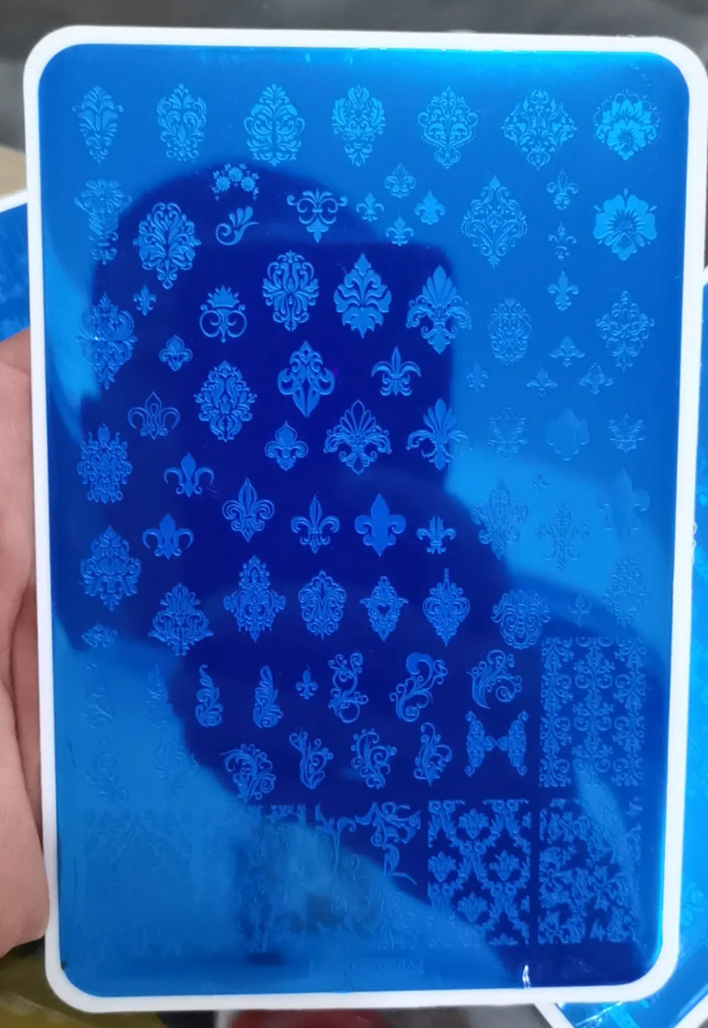 Внимание:Штампованные пластины не работают с обычными полировками. Вам нужно использовать лак для штамповки пластин, иначе дизайн не будет передан.Пластина защищена тонкой прозрачной защитной пленкой, пожалуйста, Снимите пленку перед использованием, так что лак для ногтей может быть передан штампом.Инструкции по использованию:1. Нанесите Базовое покрытие или обычный лак на ноготь.2. Нанесите штамповочный лак на желаемое изображение внутри пластины.3. Сделайте скребок, наклонившись на 45 градусов, и быстро и сильно удалите чрезмерную полировку изнутри и снаружи.4. Немедленно нажмите на штамп плавным движением, чтобы подобрать дизайн. Изображение переносится на штамп.5. Нанесите изображение на ноготь мягкими движениями. Изображение переносится на ноготь.6. Повторите шаги для всех ваших ногтей.7. После ногтей нанесите верхнее покрытие для длительного ношения.
