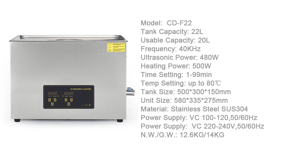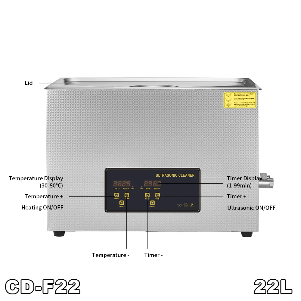 Ультразвуковая ванна 22 л с цифровым управлением и очищающей корзиной с таймером нагрева