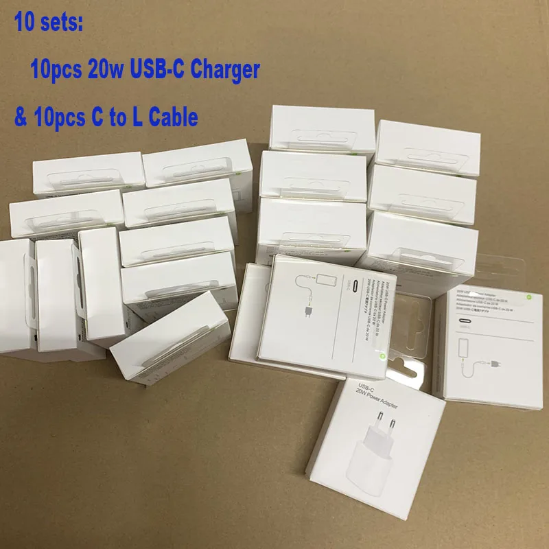10 комплектов 20 Вт PD быстрое зарядное устройство для iphone 12 Pro Max USB C C2L адаптер EU зарядное устройство для путешествий QC3.0 для Apple 11 кабели зарядное устройство с коробкой