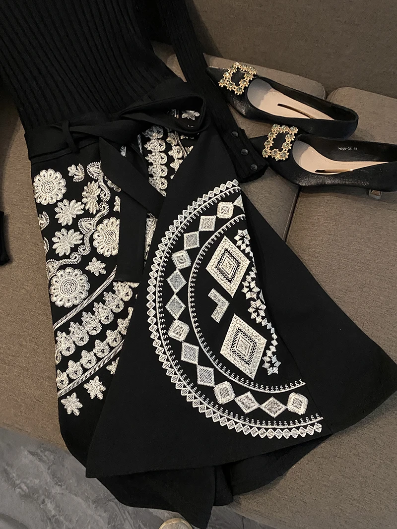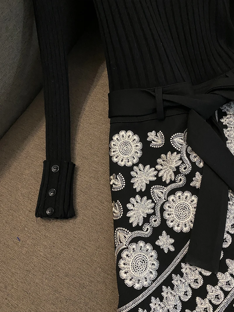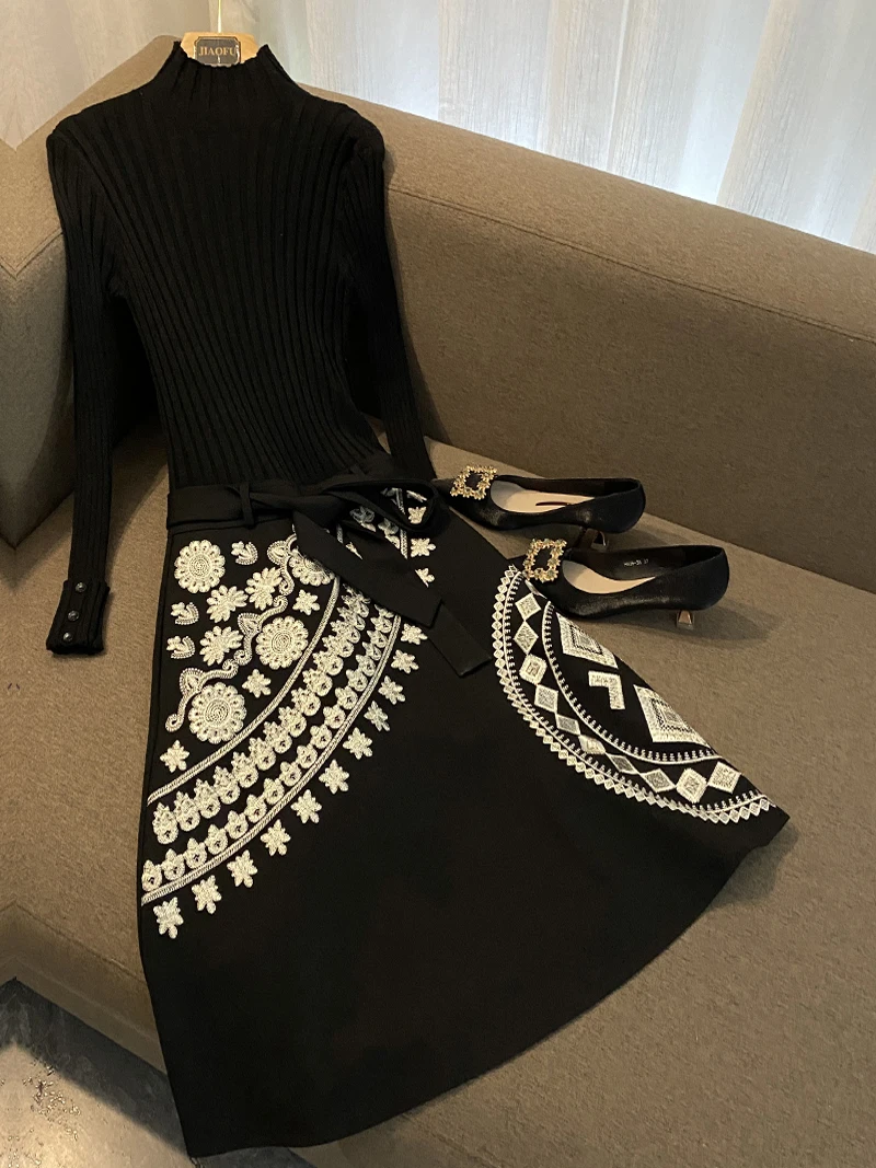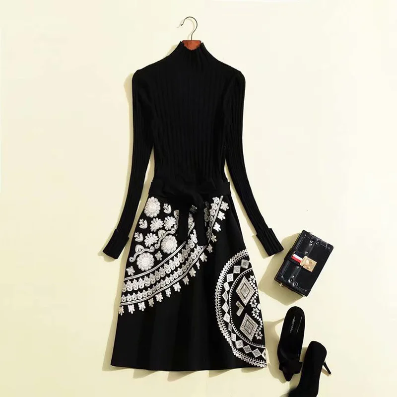 Женское трикотажное платье с длинным рукавом и вышивкой, черное платье с длинными рукавами и высоким воротником в стиле Звезд, модный бренд в одном и том же параде, весна 2022
