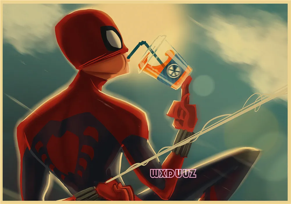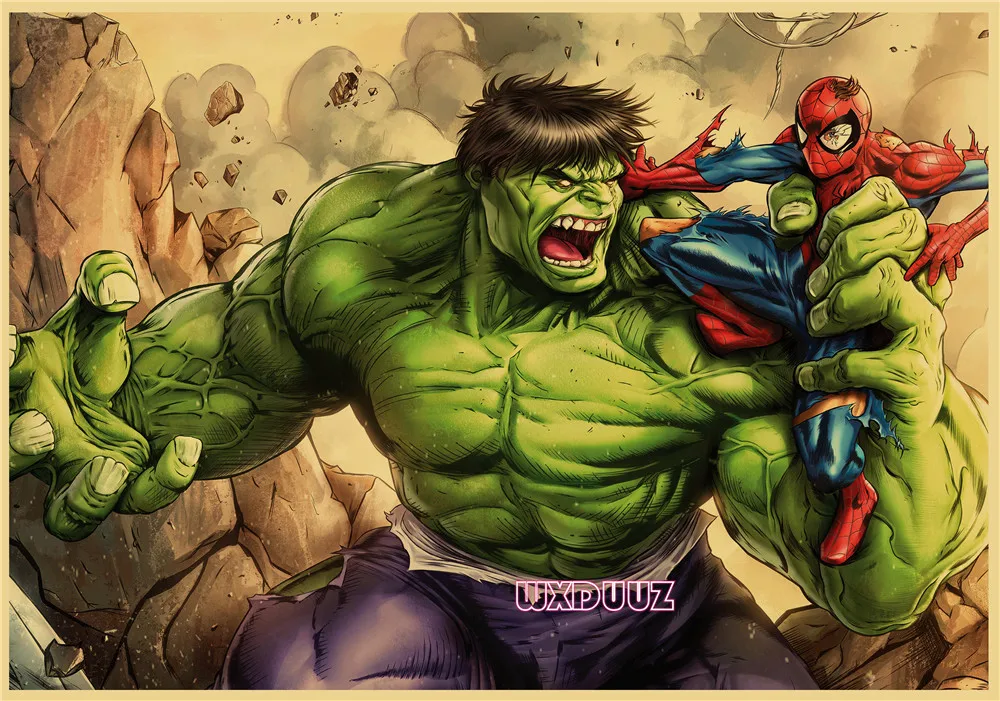 Винтажная Наклейка на стену из крафт-бумаги с героями мультфильмов Marvel, Мстители, Человек-паук, железный человек, Халк, бар
