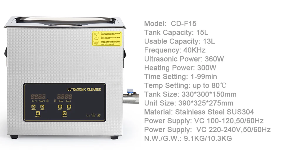 Ультразвуковой очиститель 15 л, цифровой, EU RU, местный склад, ультразвуковая ванна
