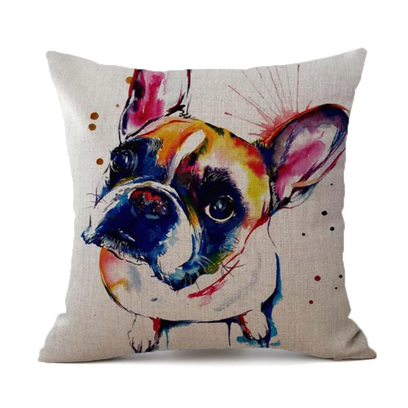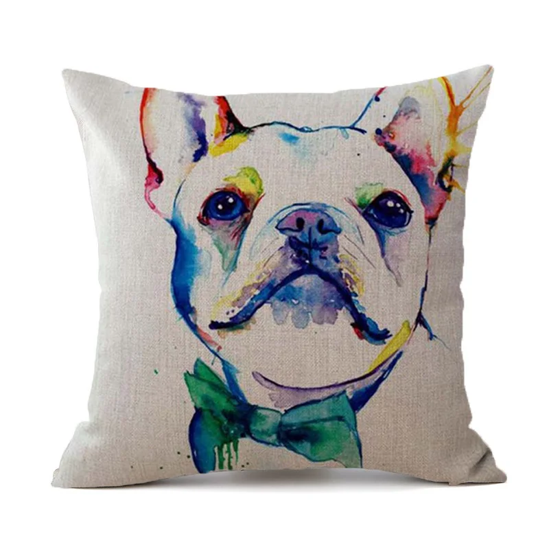 Креативный льняной чехол для подушки с изображением собаки французс...
