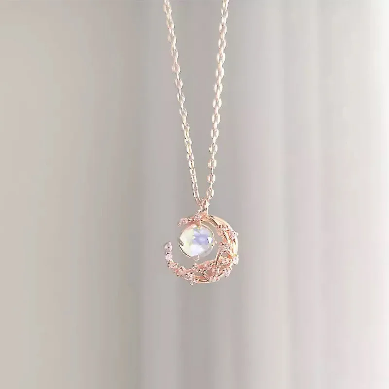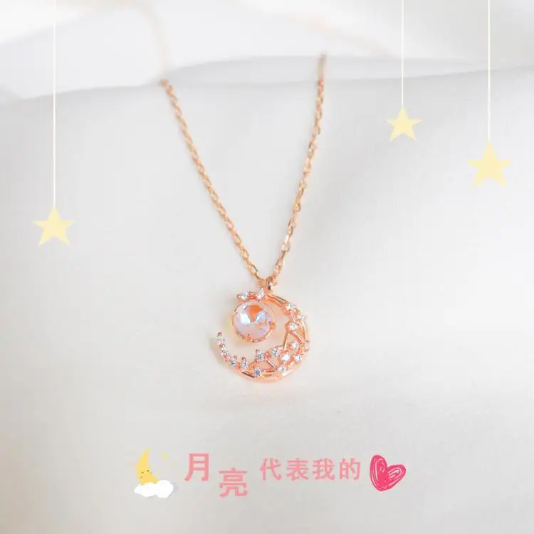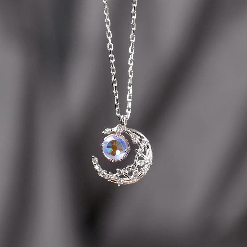 Ожерелье с кулоном в виде полумесяца, из серебра 925 пробы