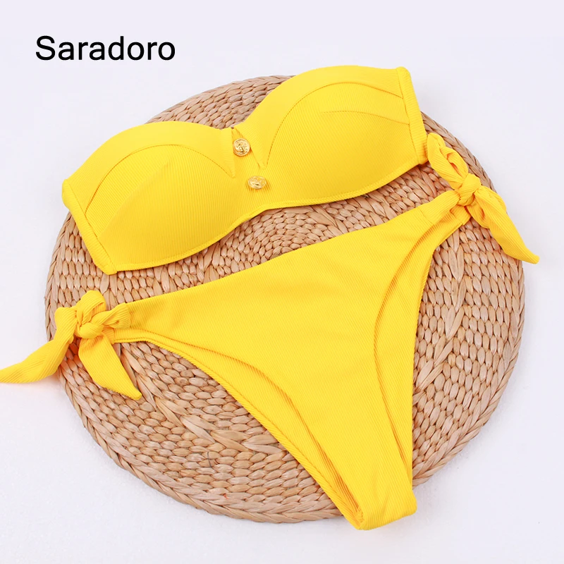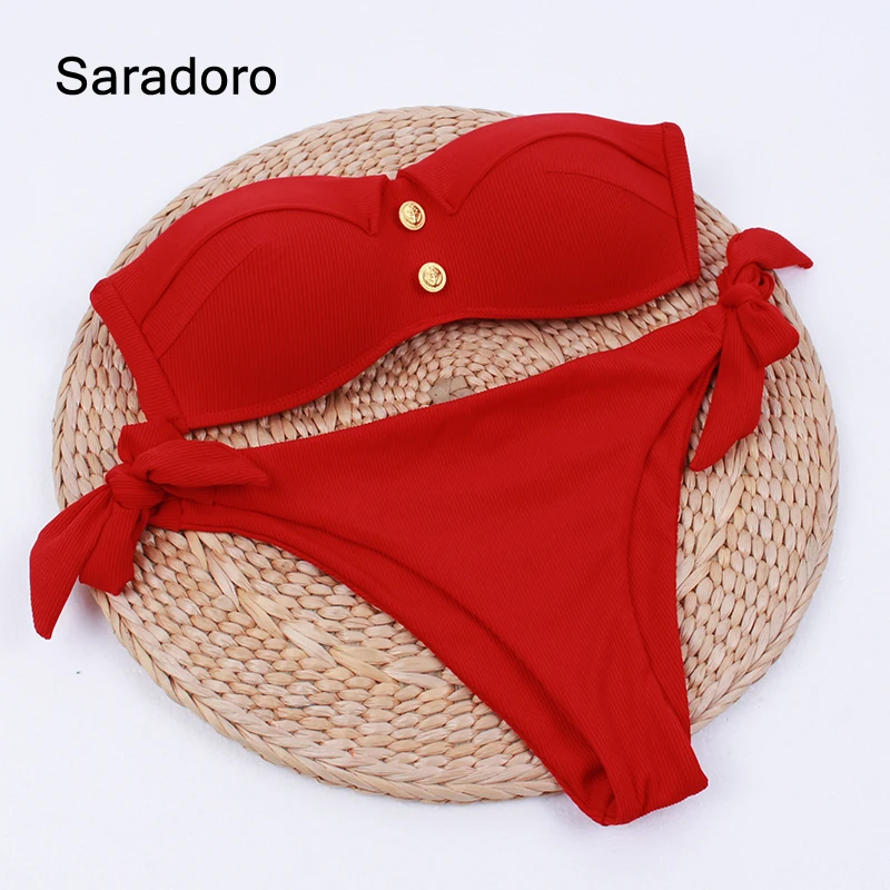Saradoro купальник женский бикини-бандо купальник 2022 новинка в рубчик купальник с пуш-ап и низкой талией купальник раздельный купальник пуш ап