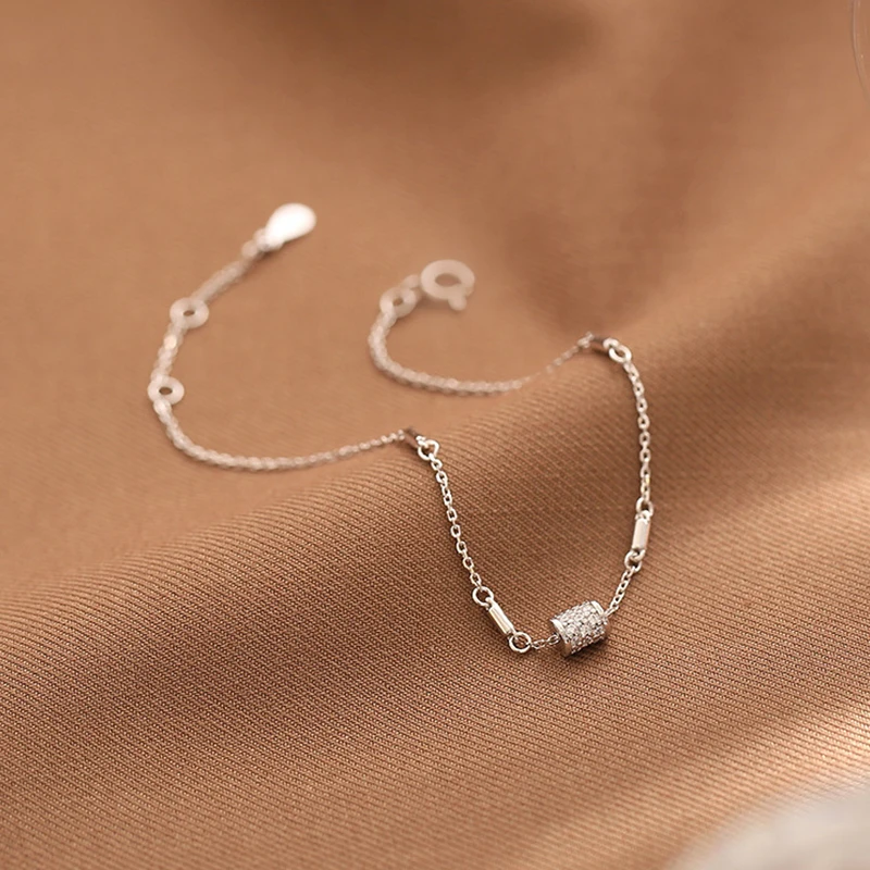 ANENJERY, серебряный цвет, медь, циркон, цилиндр, роликовый браслет, цепь для женщин, светильник, роскошный, изысканный, корейский, хит продаж, ювелирное изделие