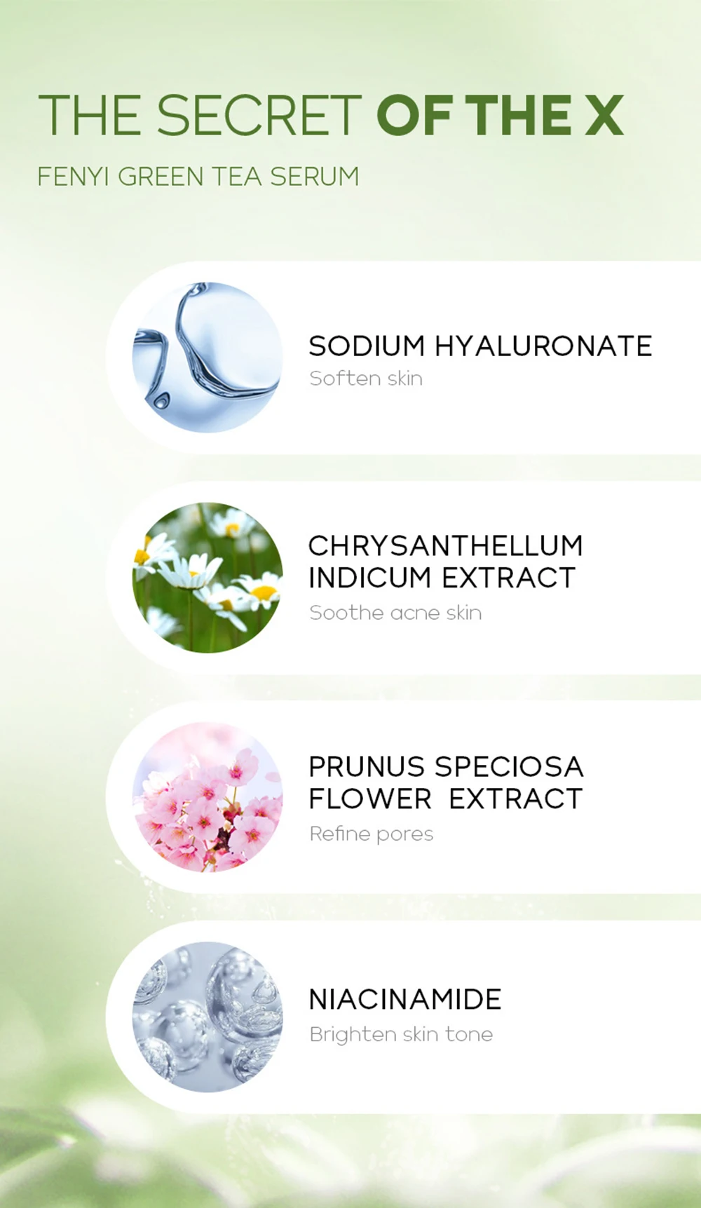 Название:Зеленый чай мягкое моющее средство 50 гЗеленая чайная Сыворотка для лица 17 мТонер для зеленого чая 100 млЛосьон для зеленого чая 100 млЗеленый чай крем для лица 40 гЗеленый чай крем для глаз 15 гЗеленый чай крем для рук 30 гПодходит для: всех типов кожиСрок годности: 3 годаЭффекты: увлажнение, контроль жирности, сужение порСостав: экстракт листьев камелии Синенсис, PRUNUS SPECIOSAЭкстракт цветка, гиалуронат натрия, гиалуронат натрияЭкстракт, NIACINAMIIDE