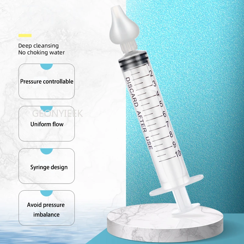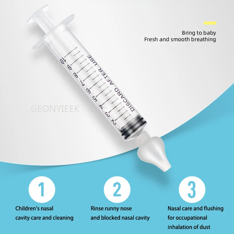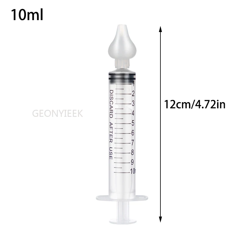 Головка изготовлена из силикона, поэтому не беспокойтесь о повреждении носовой полости ребенка. Используйте иглу для вдыхания соленой воды и нажмите на нос ребенка, чтобы очистить полость носа ребенка. Вам нужно купить соленую воду самостоятельно.