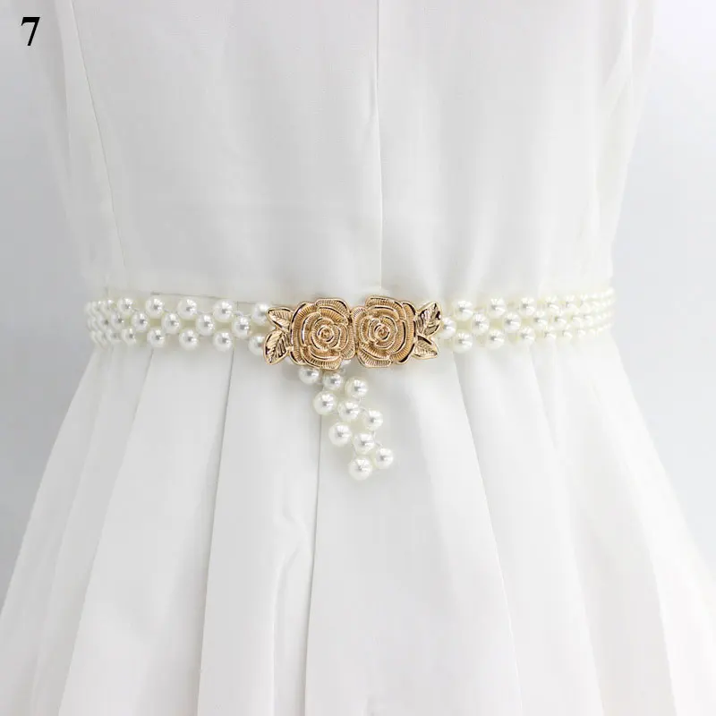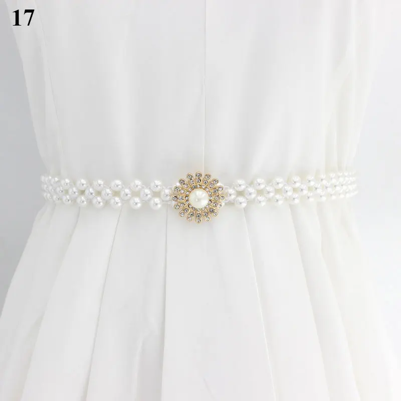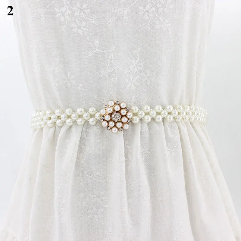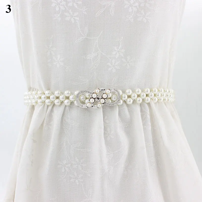 Ремень Стразы с искусственным жемчугом, эластичный пояс с пряжкой, украшение для свадебного платья, для женщин и девушек