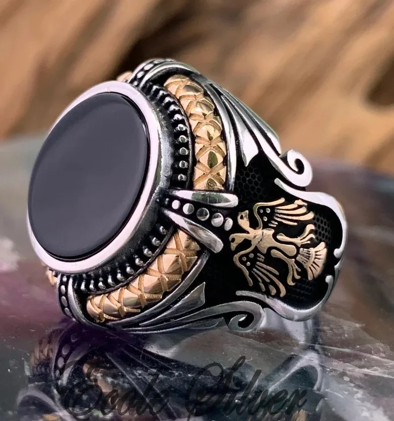 Мужское кольцо с гравировкой, гетеротипическим орлом, Вороной и дли...