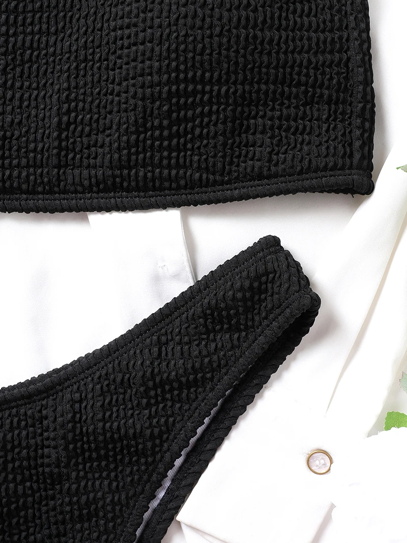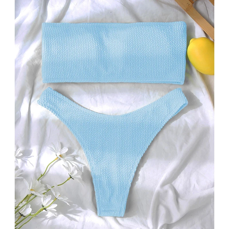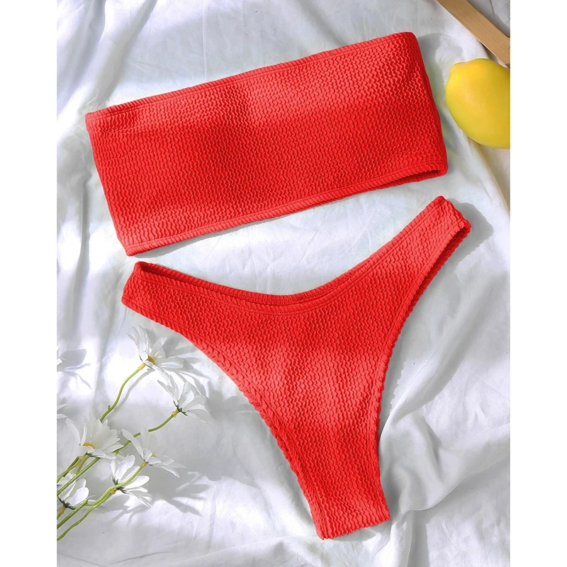 Женское Бикини бандо, женский купальник 2022, ребристые купальники, Женские однотонные купальные костюмы, сексуальное бикини с открытыми плечами, летнее пляжное бикини
