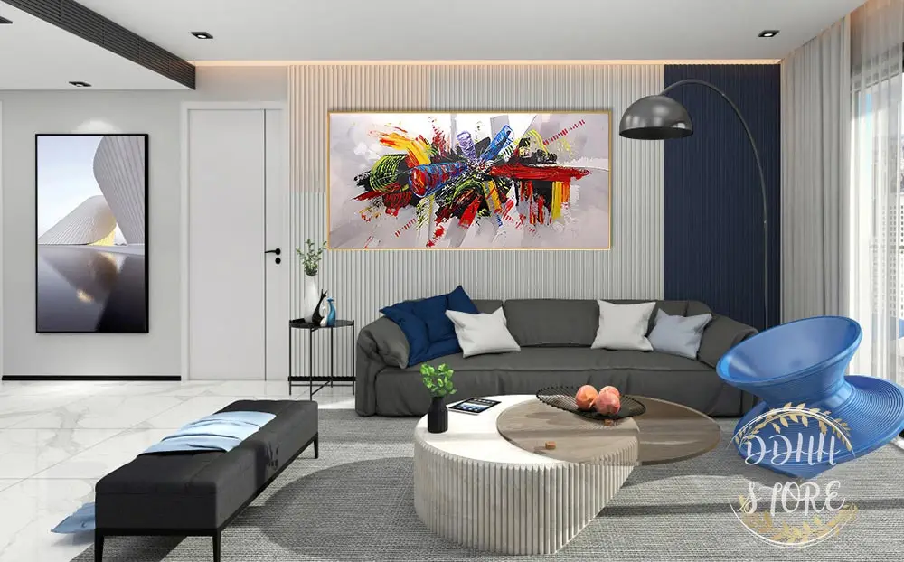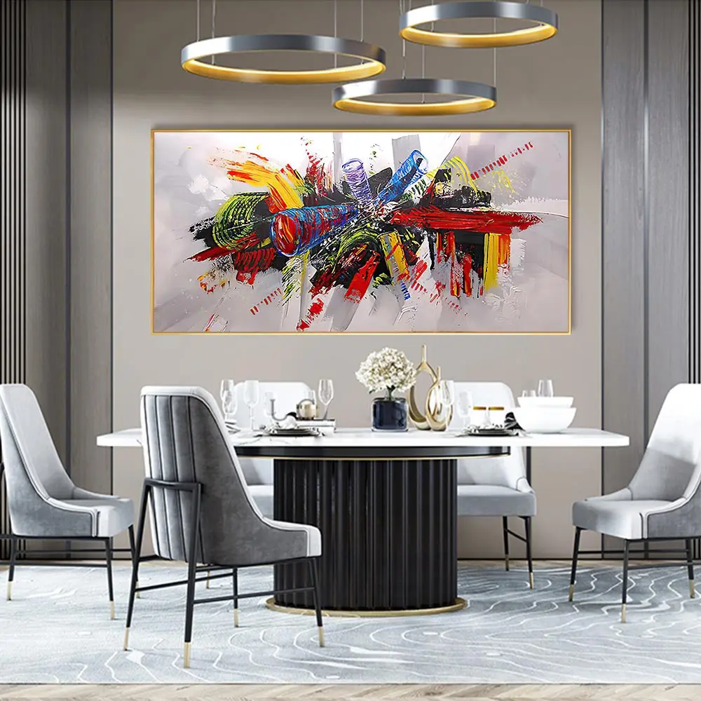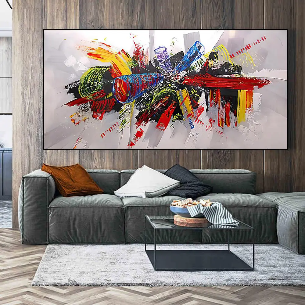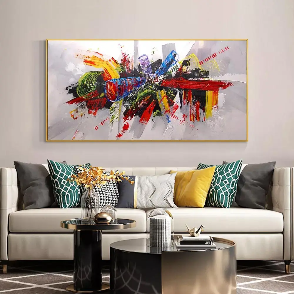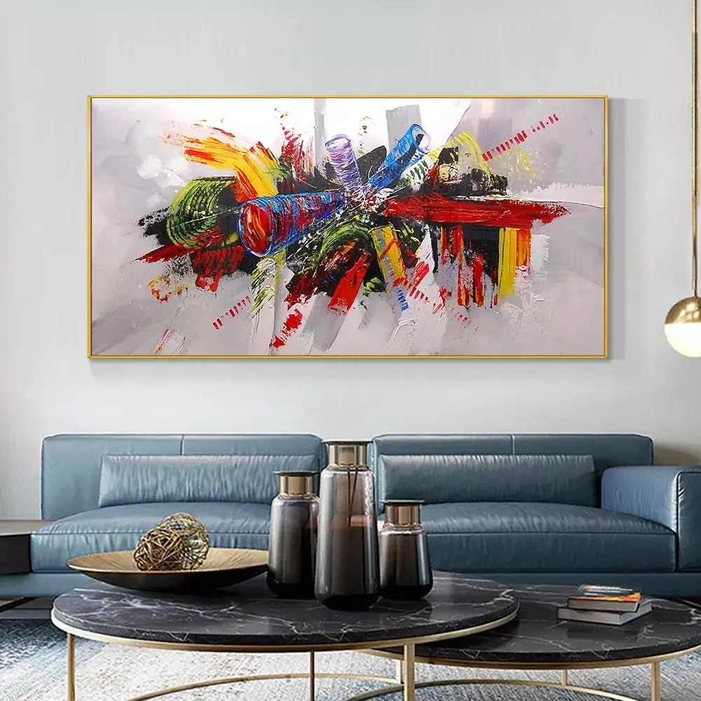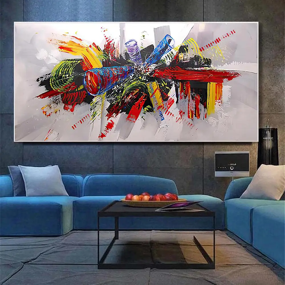 Большая картина маслом, настенная живопись, красочная абстрактная к...