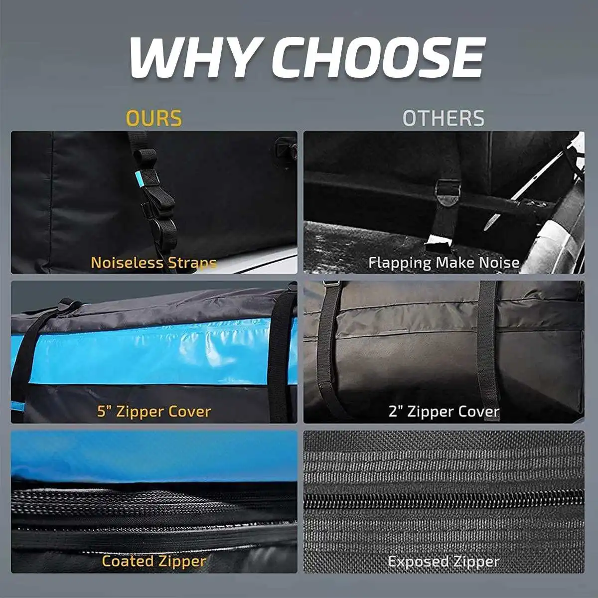 Особенности:1. Грузовой мешок на крыше увеличивает грузовое пространство транспортного средства.2. Водонепроницаемый дизайн защищает груз от дорожной грязи, солнца, ветра и дождя.3. Компактные гибкие складки подходят для нечетных нагрузок, удобны в хранении.4. Подходит для поездок на дальние расстояния.