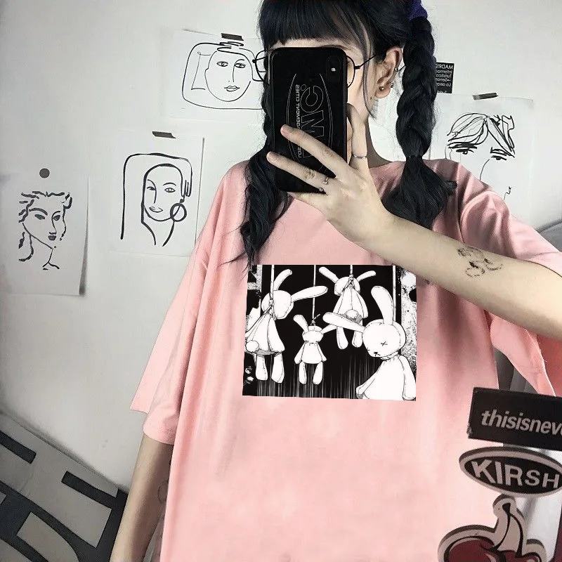 Футболка женская оверсайз в стиле Харадзюку, винтажная рубашка с гр...
