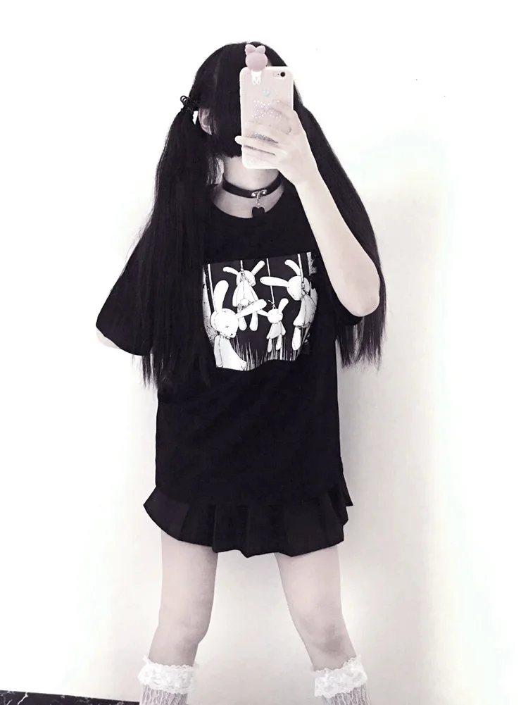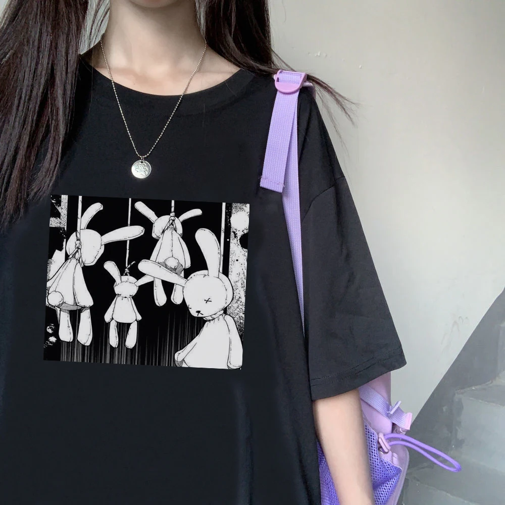 Футболка женская оверсайз в стиле Харадзюку, черная Готическая руба...