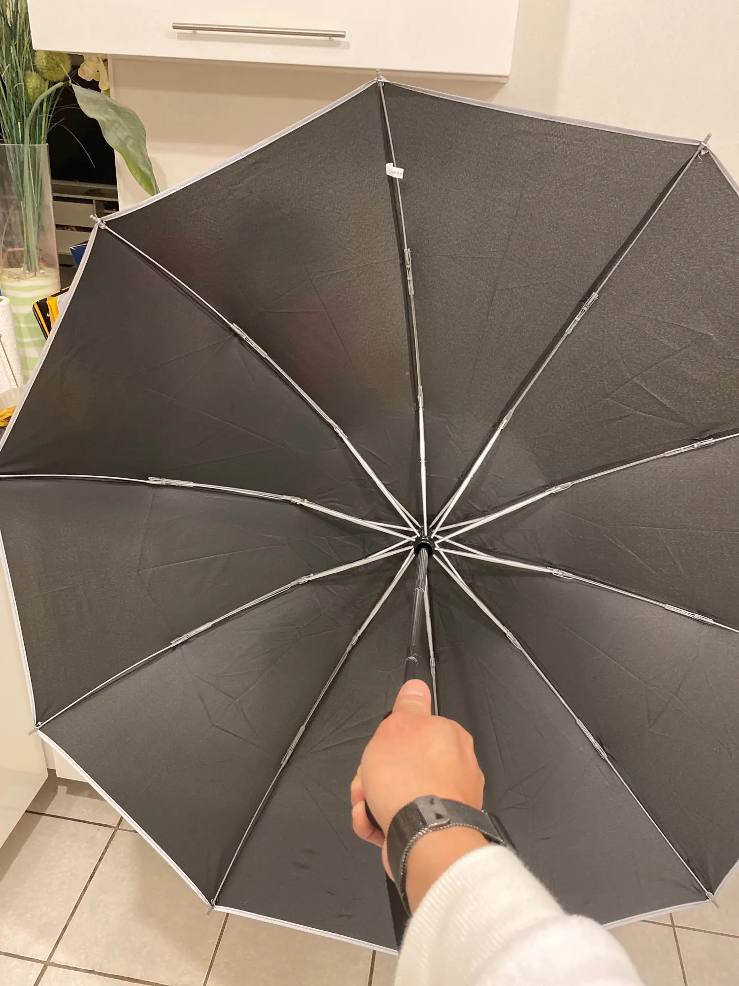У вас никогда не будет слишком большого количества зонтов. Это особенно приятно держать в автомобиле, так как он открывается (и убирается) автоматически одним касанием кнопки. Он имеет так много «пальцев», придающих ему отличную форму и делает его действительно крепким при высоких ветрах. Светоотражающая Отделка на кромке также приятна на ощупь.
