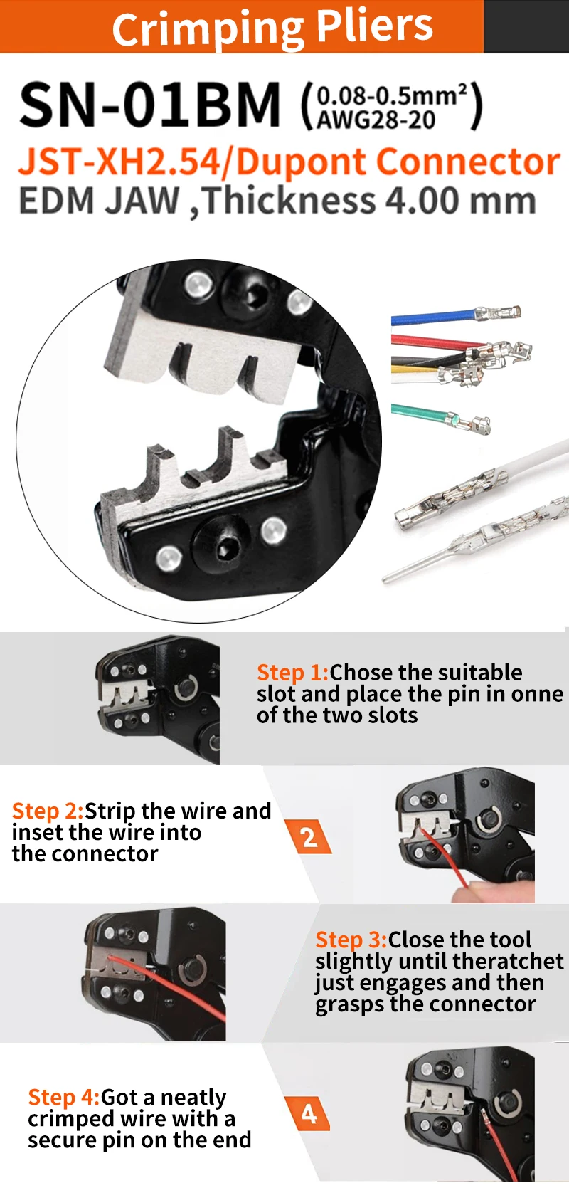 Dupont обжимной инструмент комплект SN-01BM AWG 28-20 (0,08-0.5mm м²) щипцы плоскогубцы набор с 2,54 мм Dupont разъемы JST-XH терминал