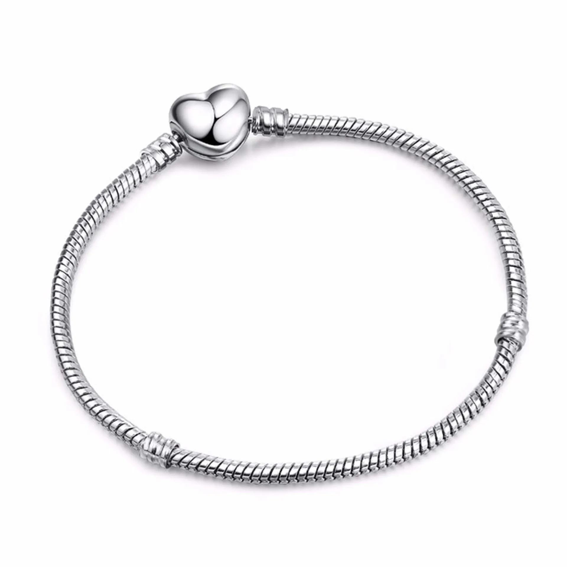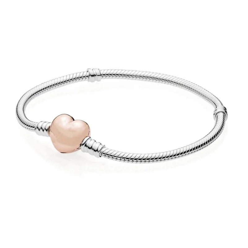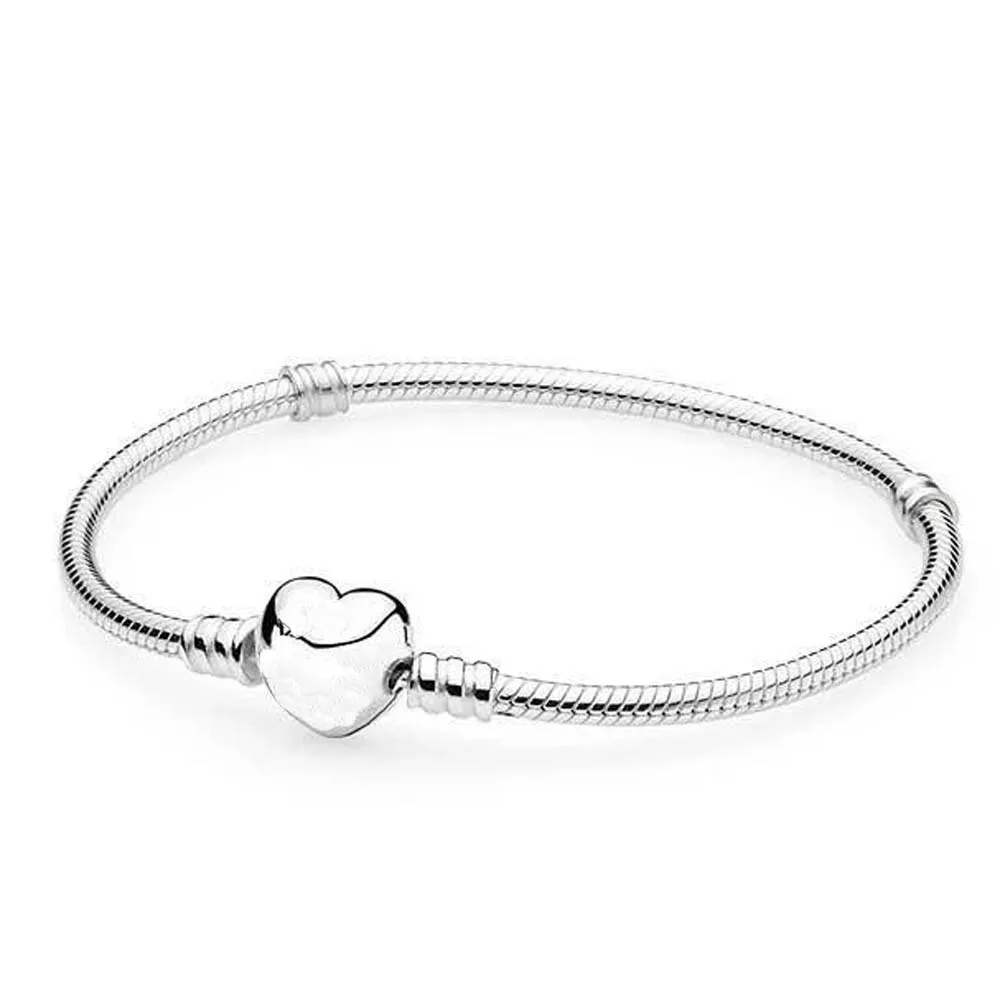 Браслет Pandora из стерлингового серебра 925 пробы с сердечком и застежкой, браслет-цепочка из змеиной кости с сердечком, браслет-цепочка со змеиным узором, женские рождественские подарки