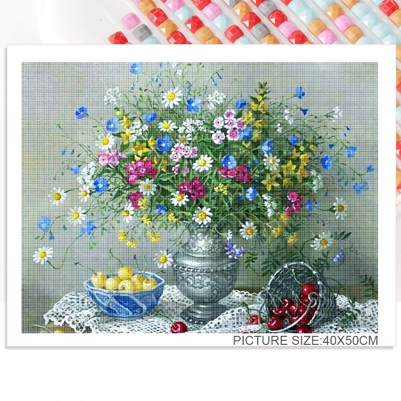 Алмазная 5D картина сделай сам, цветы, ваза, Набор для вышивки крес...