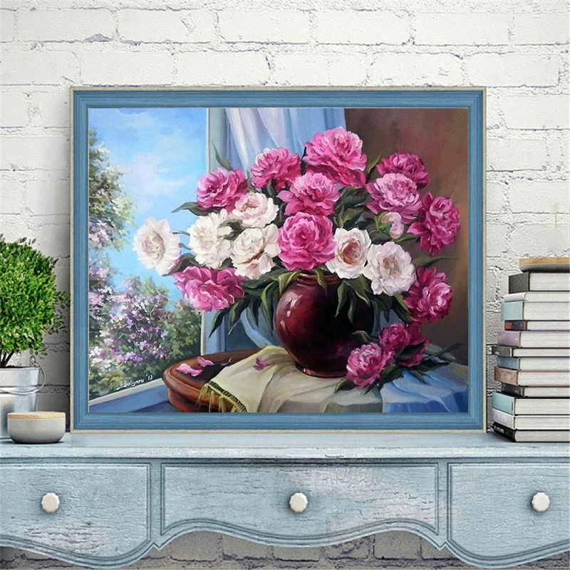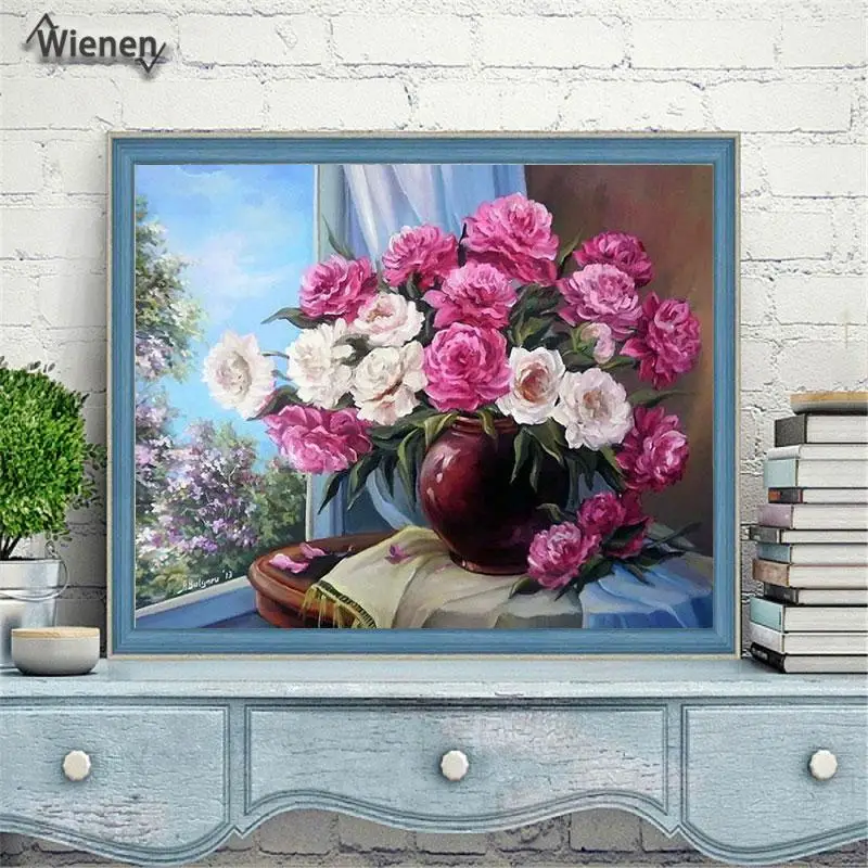 5D алмазная живопись сделай сам, цветы, полная вышивка, алмазная вышивка, цветы розы в вазе, мозаика, картина стразы, вышивка крестиком