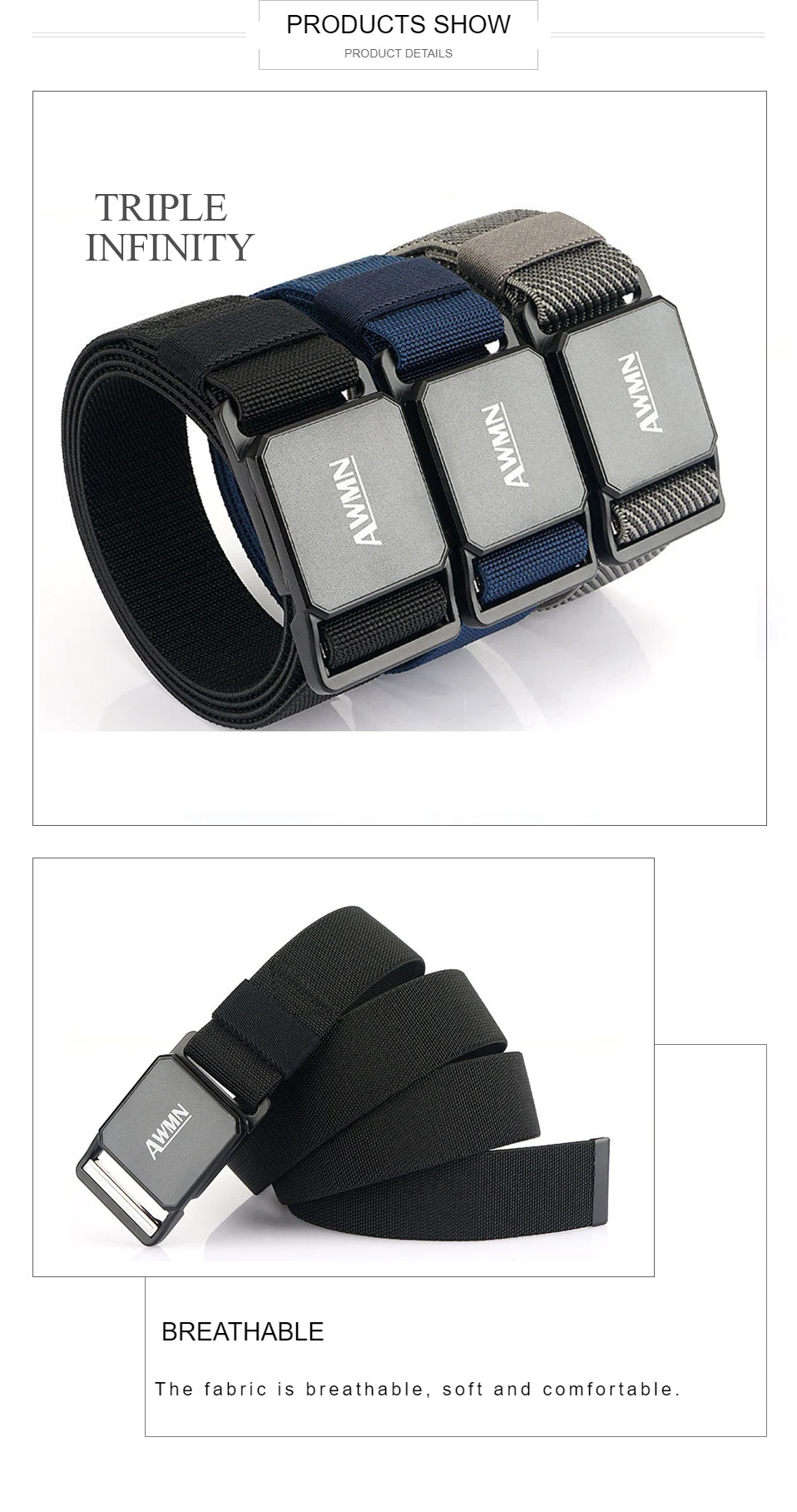 Нейлоновый ремень с тройной бесконечностью для мужчин, Регулируемый...