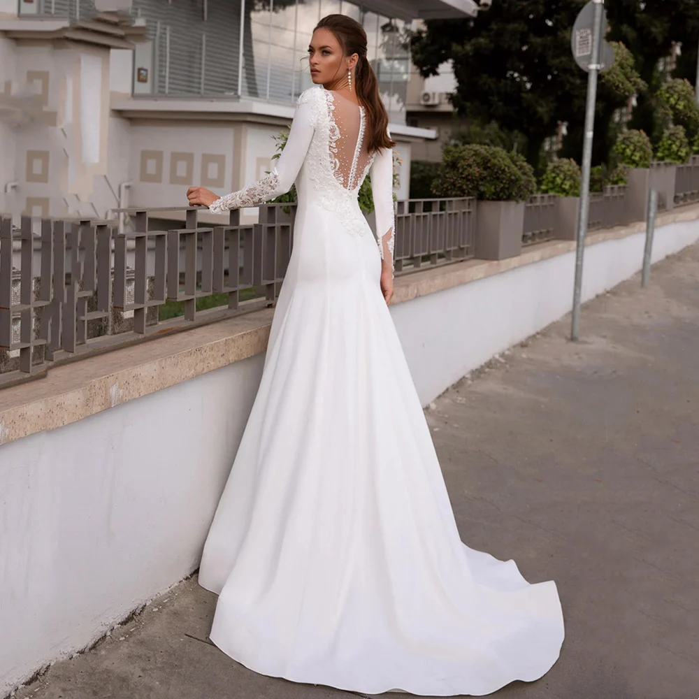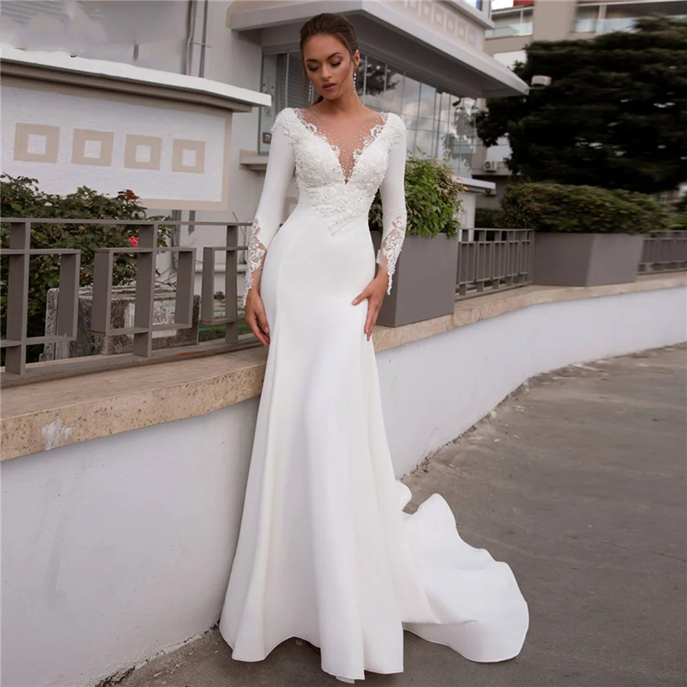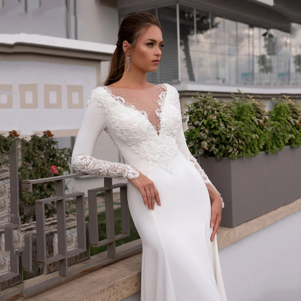 Свадебные платья с длинным рукавом, свадебное платье русалки, Кружевная аппликация, бусины, стиль бохо, женское элегантное платье