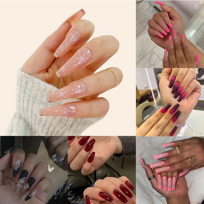 Супер Длинные накладные ногти гроб глянцевый Искусственный пластик ...