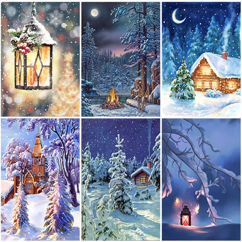 Алмазная живопись 5D "сделай сам", зимний Снежный пейзаж, мозаика, ...
