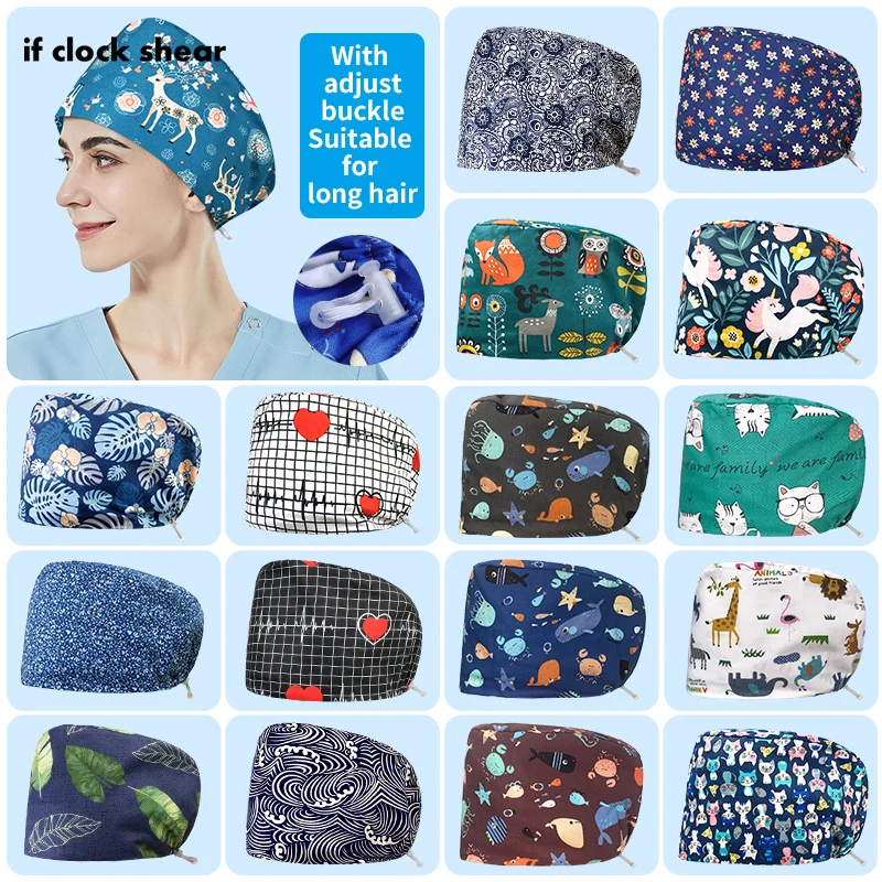Шапка для медсестры с цветочным узором, регулируемая шапка с разным...
