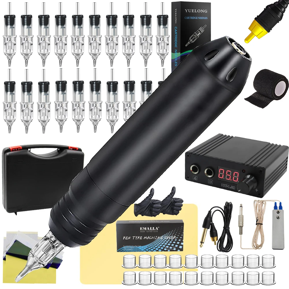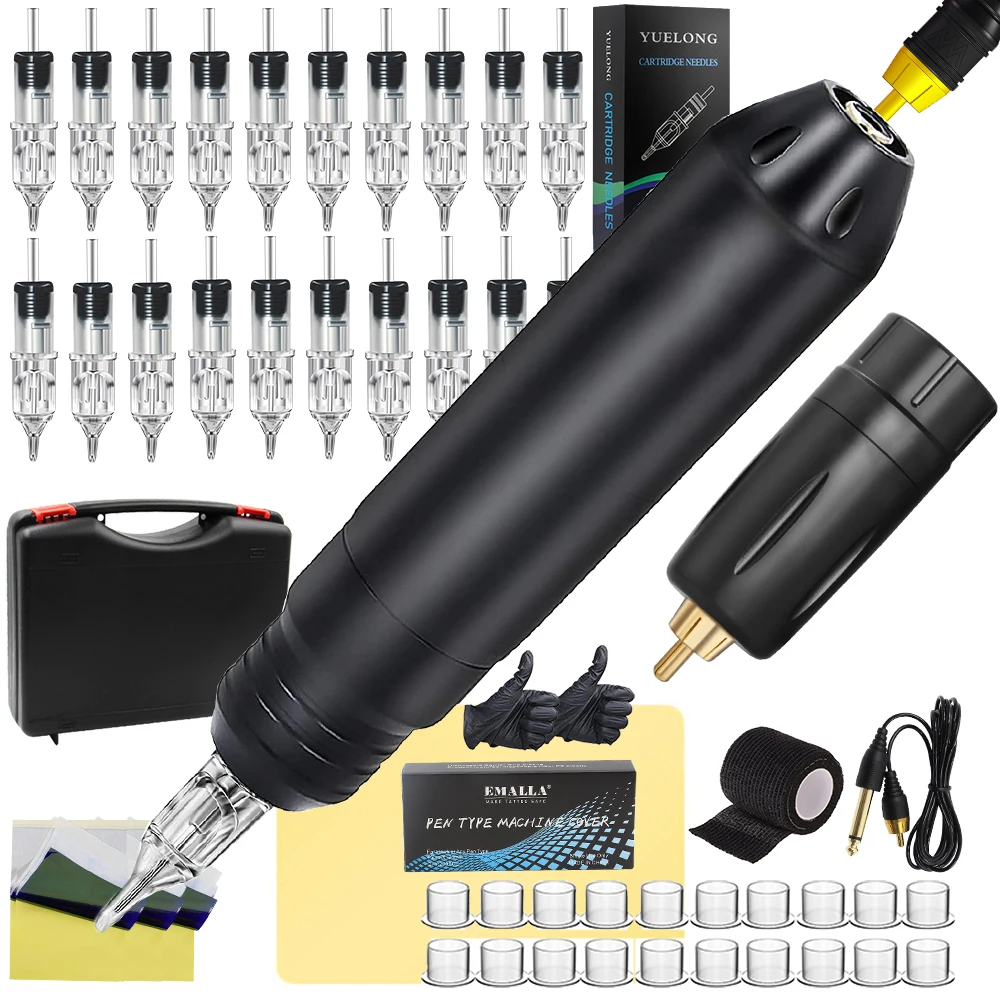 Полный Набор татуировок Вращающаяся ручка с питанием картриджи ИГЛЫ Перманентный макияж тату машина набор для начинающих