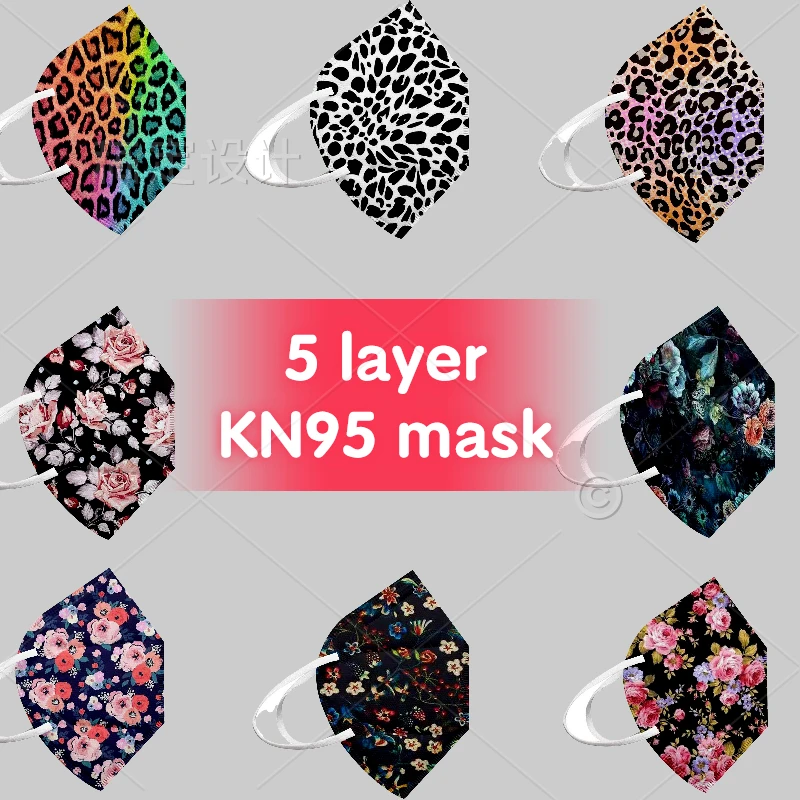 Маска для лица KN95 с цветочным принтом, одноразовая, 5 слоев, Пылезащитная, дышащая, модная, на заказ, ffp2 kn95 2022, 50 шт.