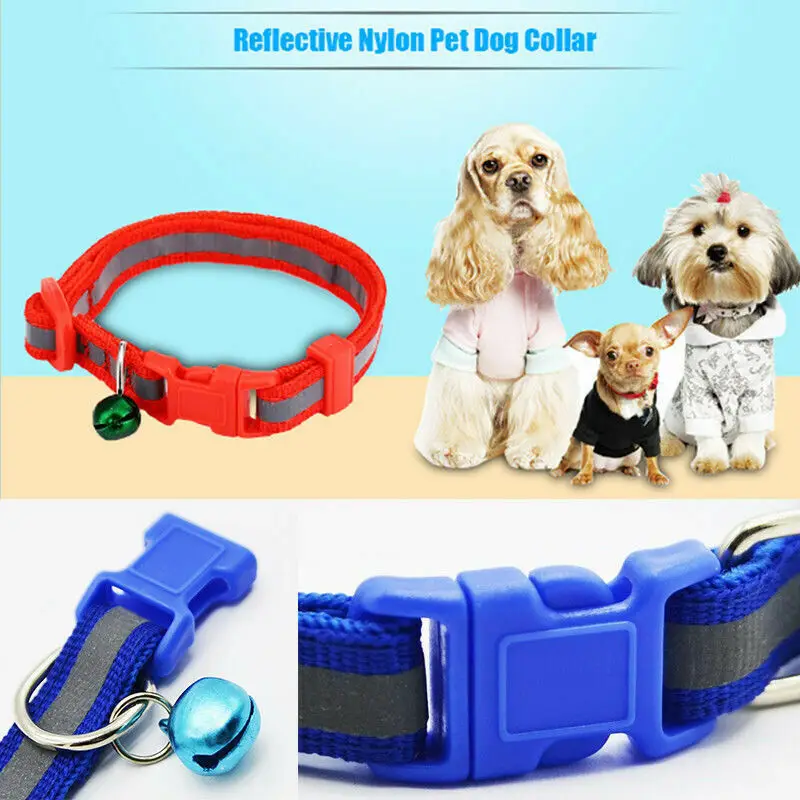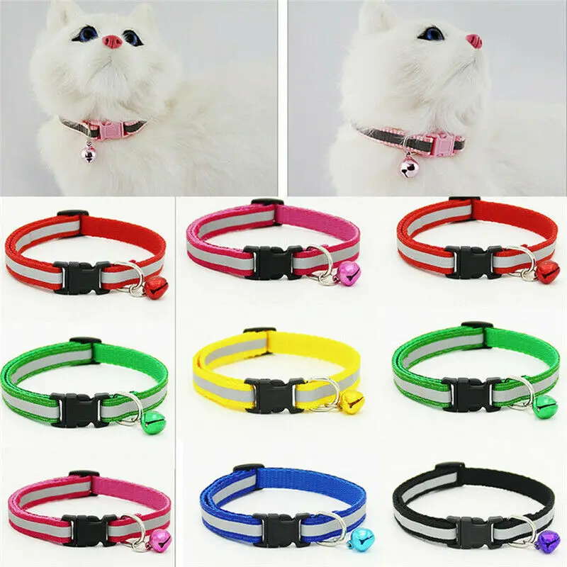 Регулируемый светоотражающий защитный нейлоновый ошейник для кошек с колокольчиком, защитный ошейник для кошек и собак, ремешок на шею для кошек и котят