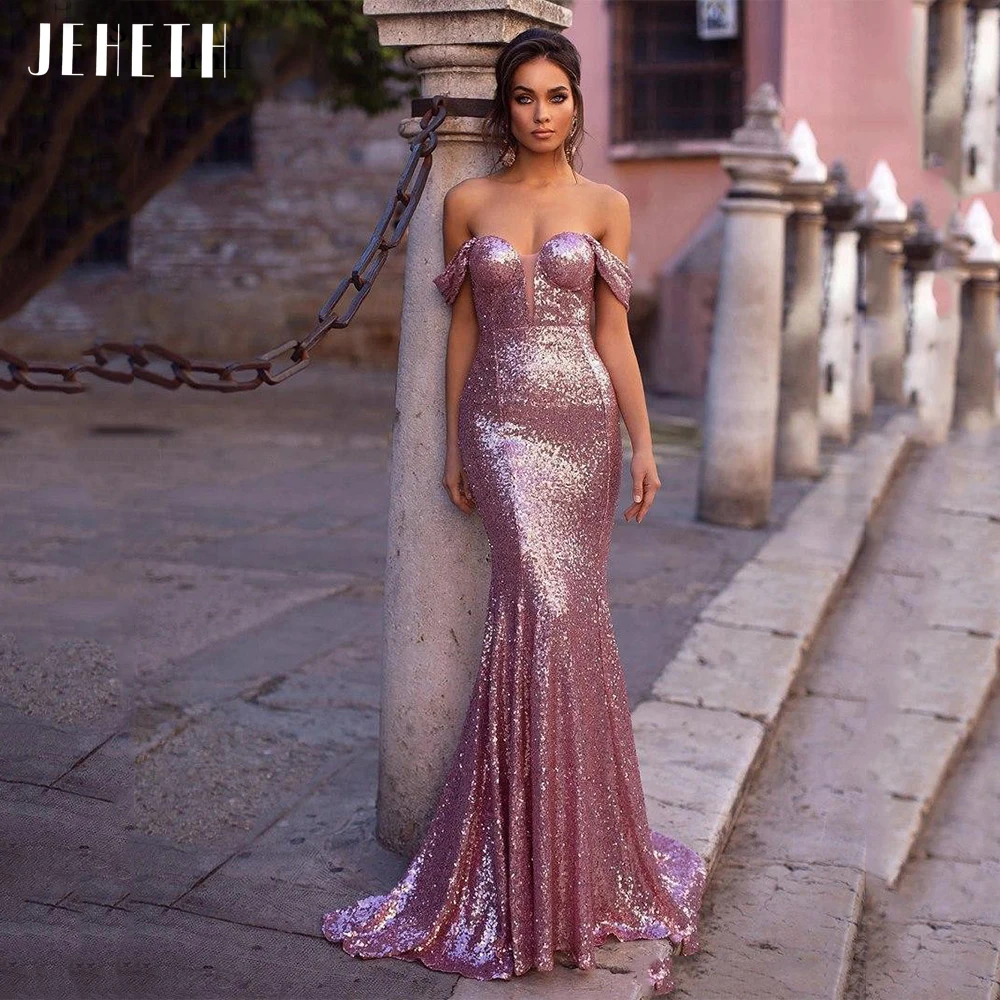 Женское вечернее платье с блестками JEHETH, блестящее платье с открытыми плечами, с юбкой-годе, с открытой спиной, бальное платье для выпускного вечера