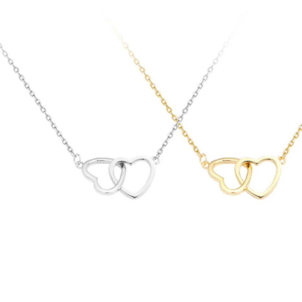 Название модели: модное женское ожерелье в форме двух сердец d, женское изысканное геометрическое колье, подарок на день рождения для дам, ювелирное изделие, подарок