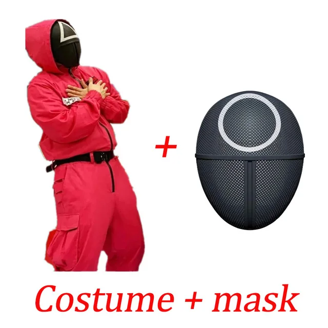 игра в кальмара маска Красный комбинезон Villain костюм косплей Хэл...