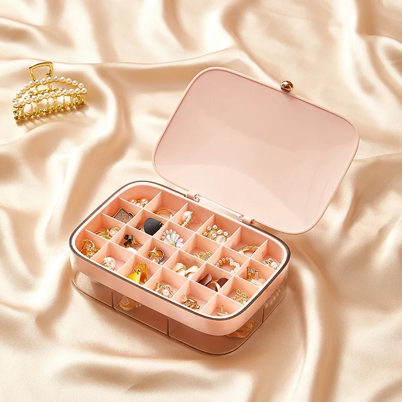 Шкатулка для ювелирных изделий из ПУ кожи для девочек, органайзер, дорожная шкатулка для хранения ювелирных изделий, двухслойная шкатулка для серег и кольца, Женская шкатулка-органайзер для мелочей
