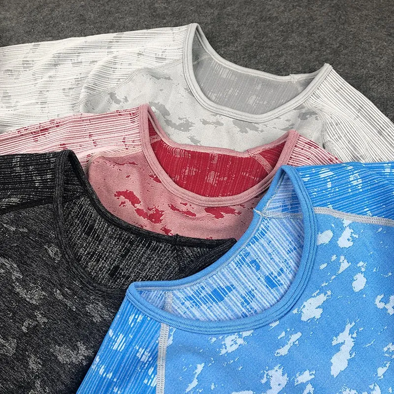 Бесшовные комплекты для йоги, женские укороченные топы с длинным ру...